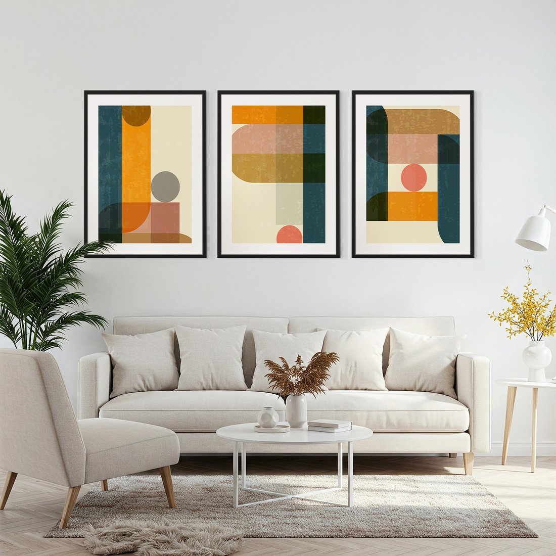 Przenieś piękno sztuki do swojego domu dzięki naszemu starannie skomponowanemu produktowi zestaw obrazów geometryczne, abstrakcja, minimalizm. Każdy plakat, oprawiony w elegancką ramę, łączy w sobie estetykę i trwałość. Uniwersalne wzornictwo sprawia, że te dekoracje ścienne doskonale komponują się z różnymi stylami wnętrz, od nowoczesnych po klasyczne. Łatwość montażu pozwala na szybką i bezproblemową metamorfozę Twojej przestrzeni. To również idealny pomysł na wyszukany prezent, który z pewnością zachwyci.