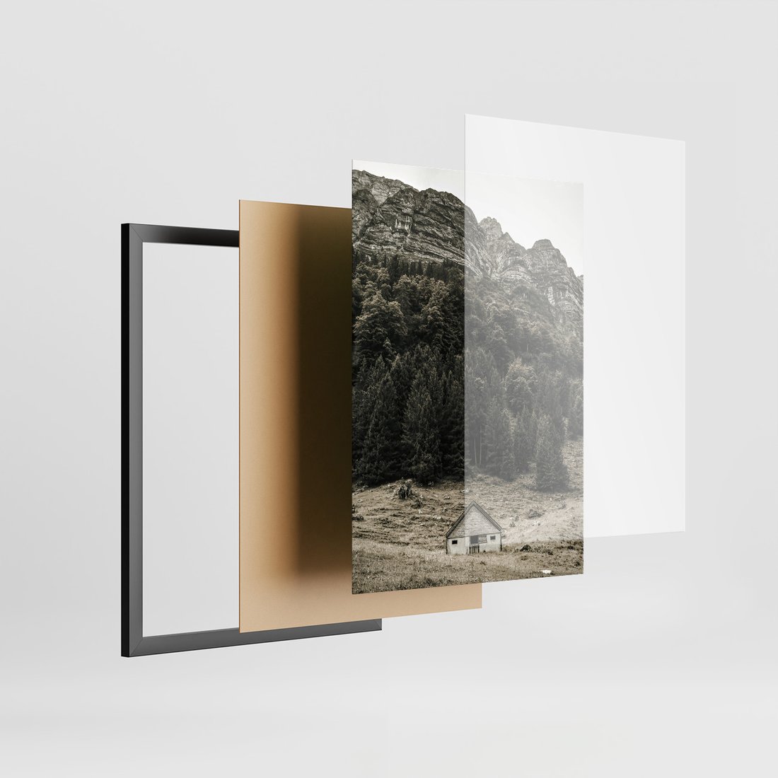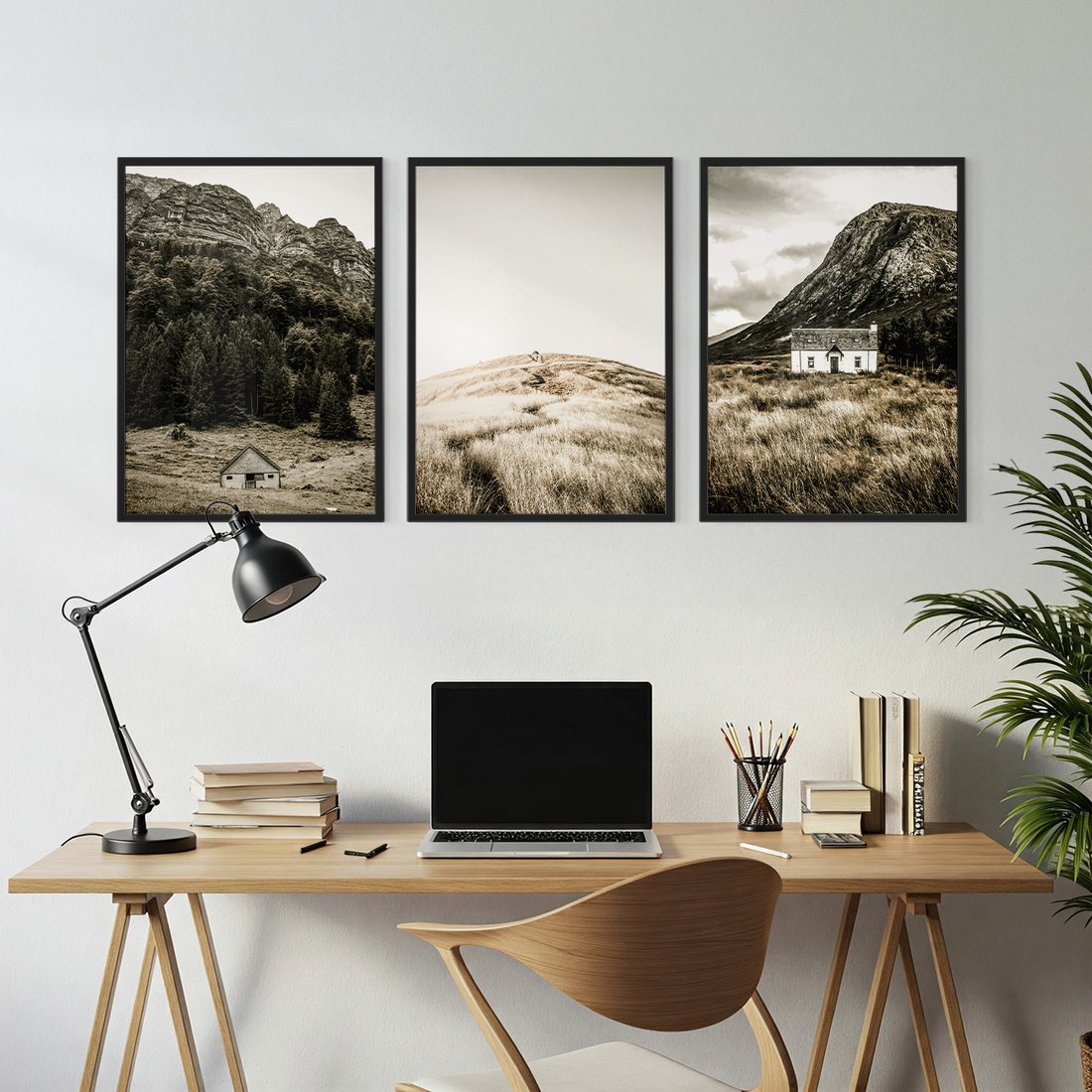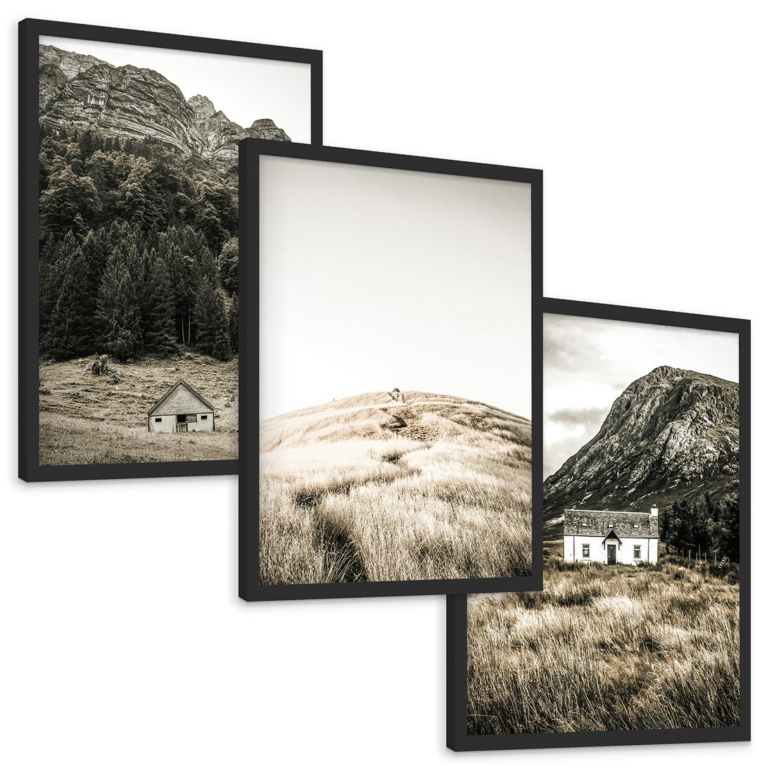 Zestaw obrazy w ramie, plakaty - góry, domy, krajobraz - rama czarna