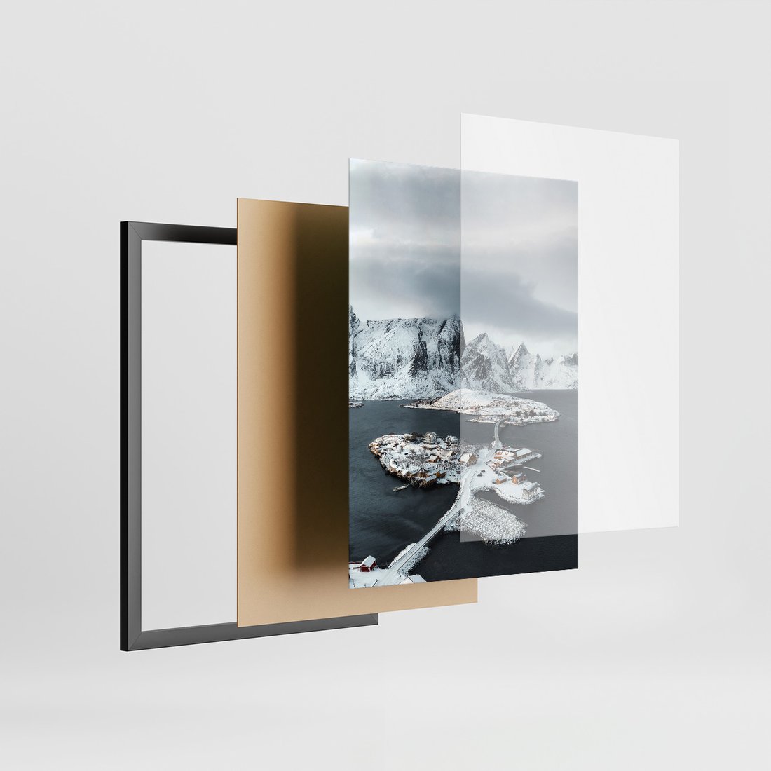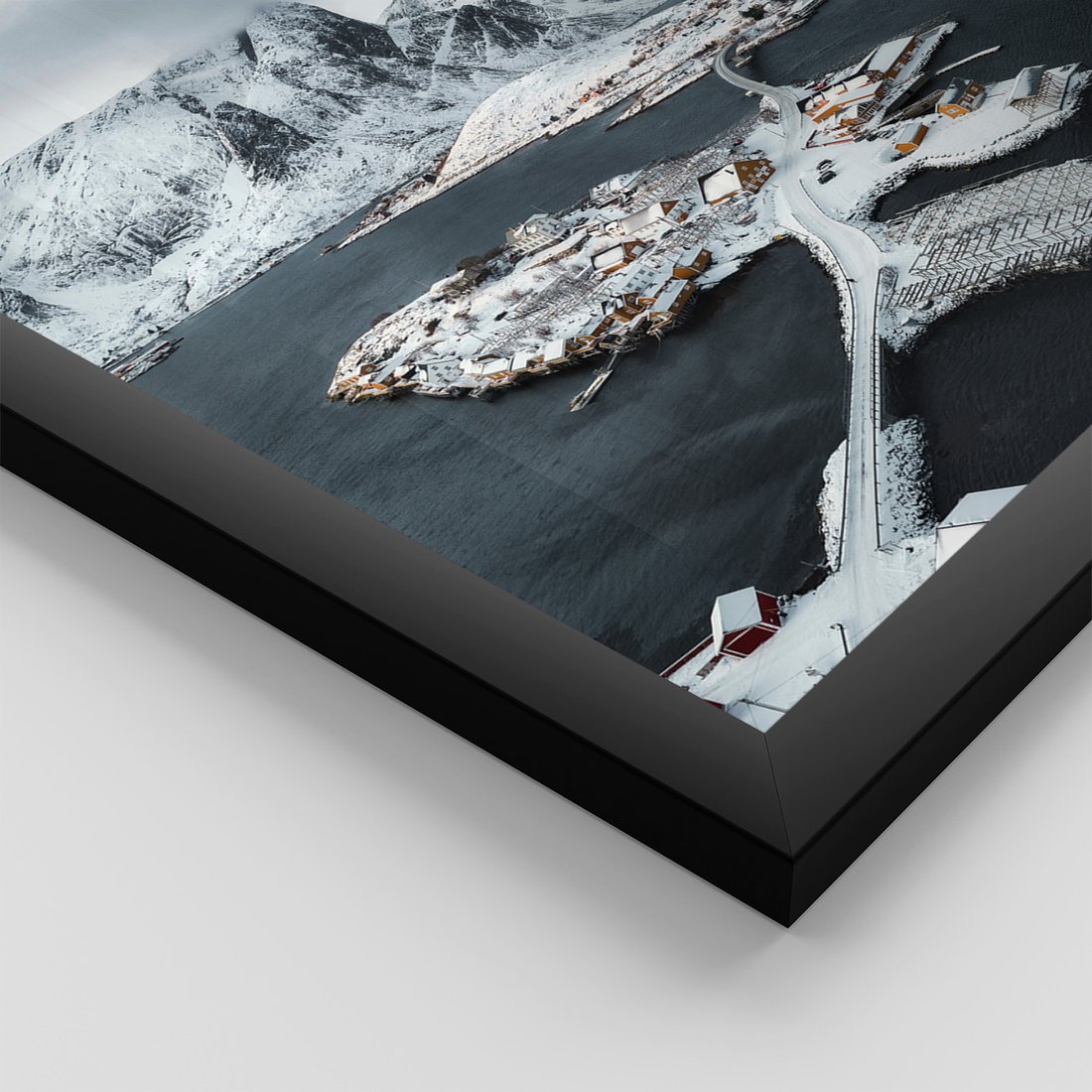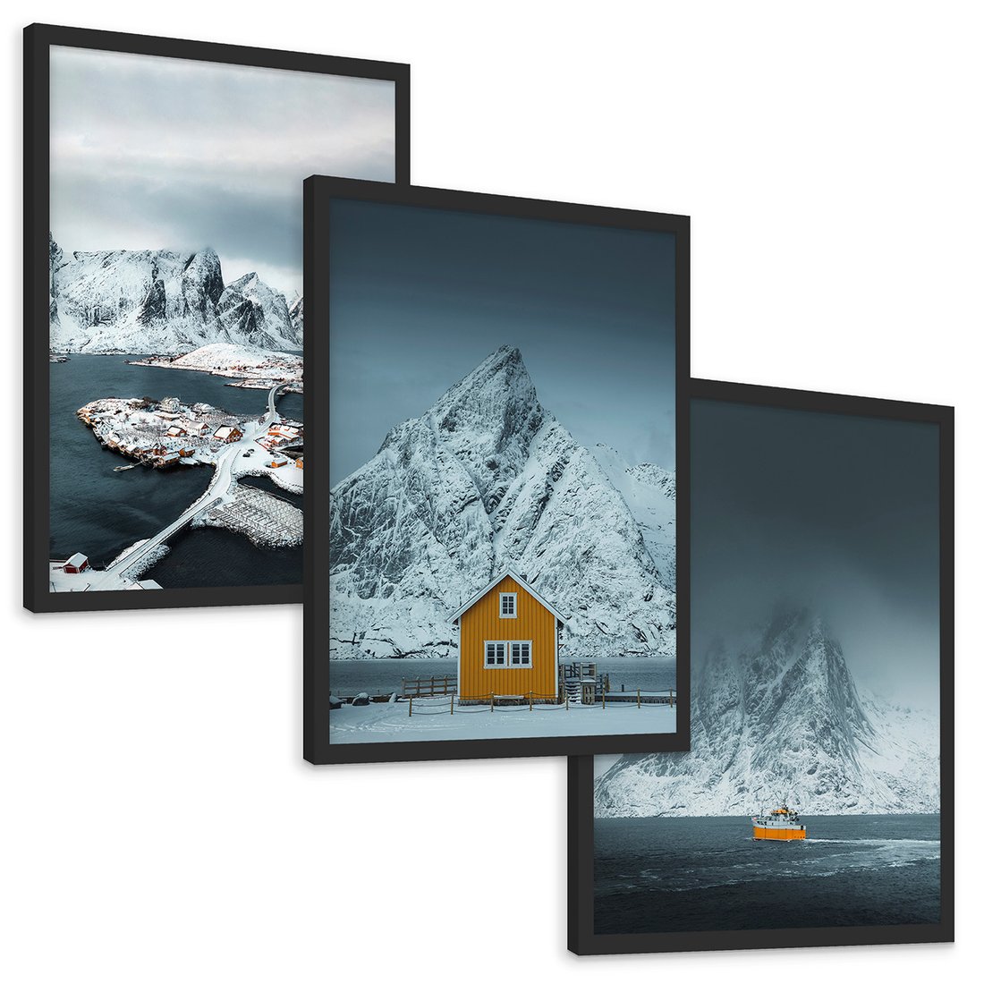 Zestaw obrazy w ramie, plakaty - góry, śnieg, woda - rama czarna