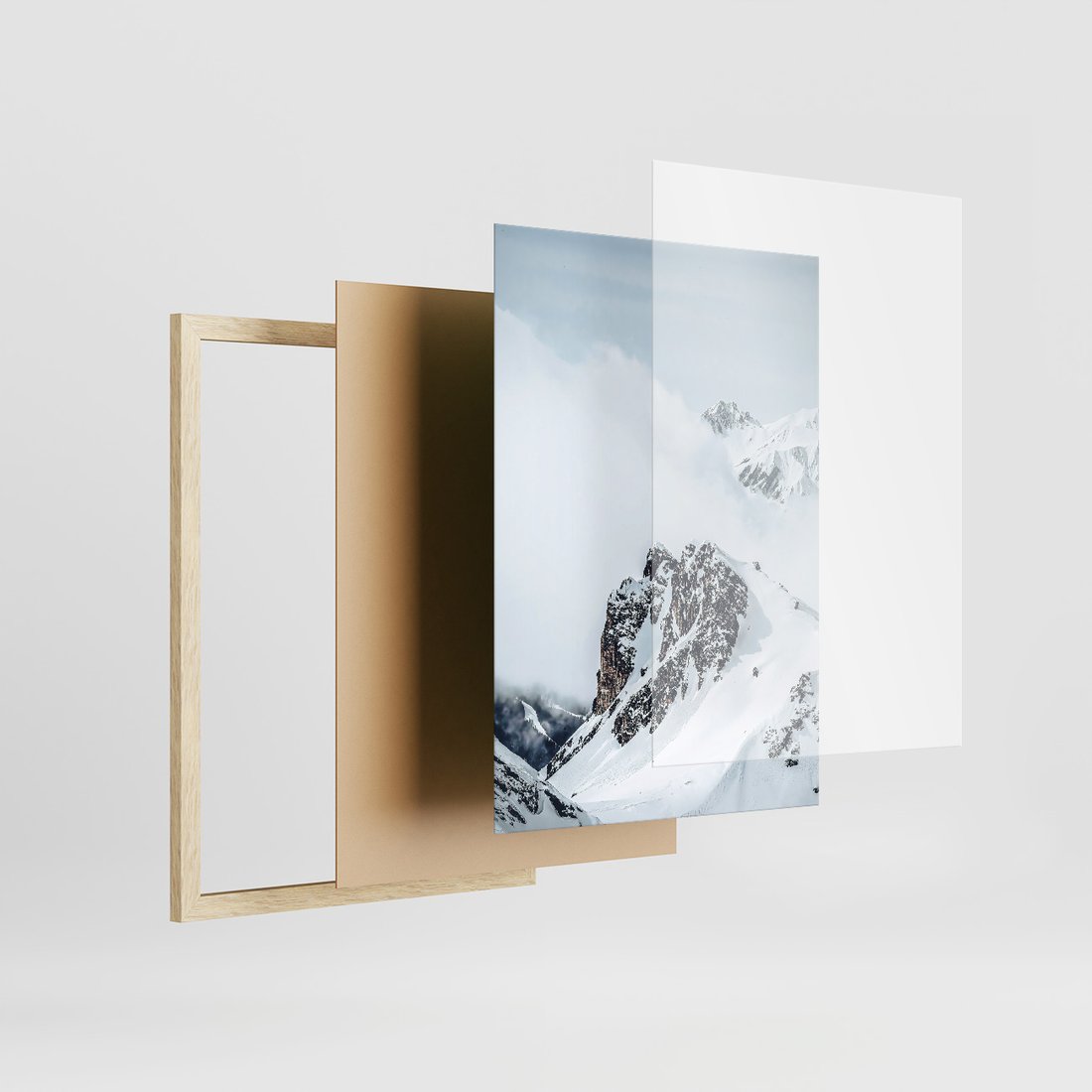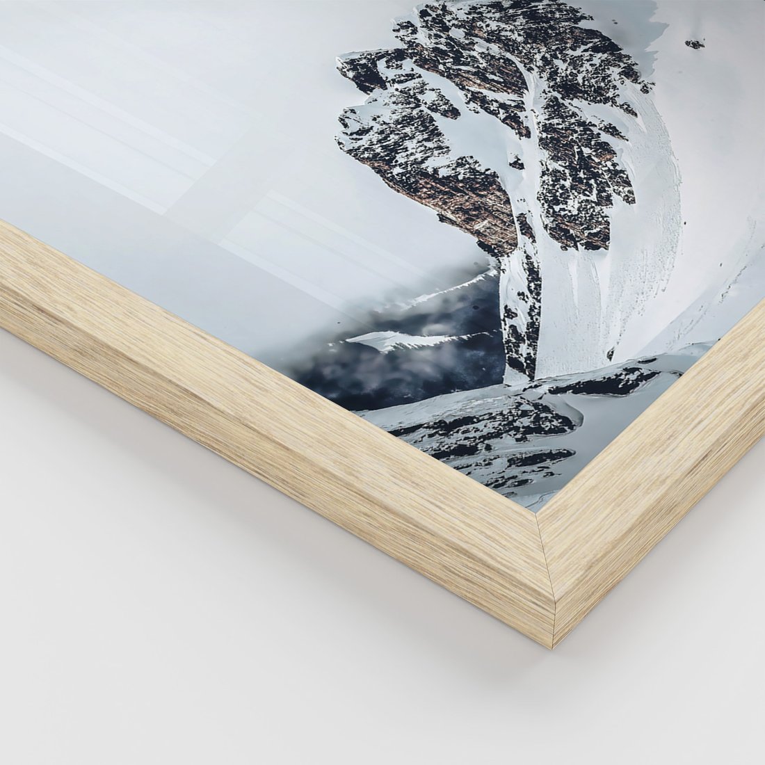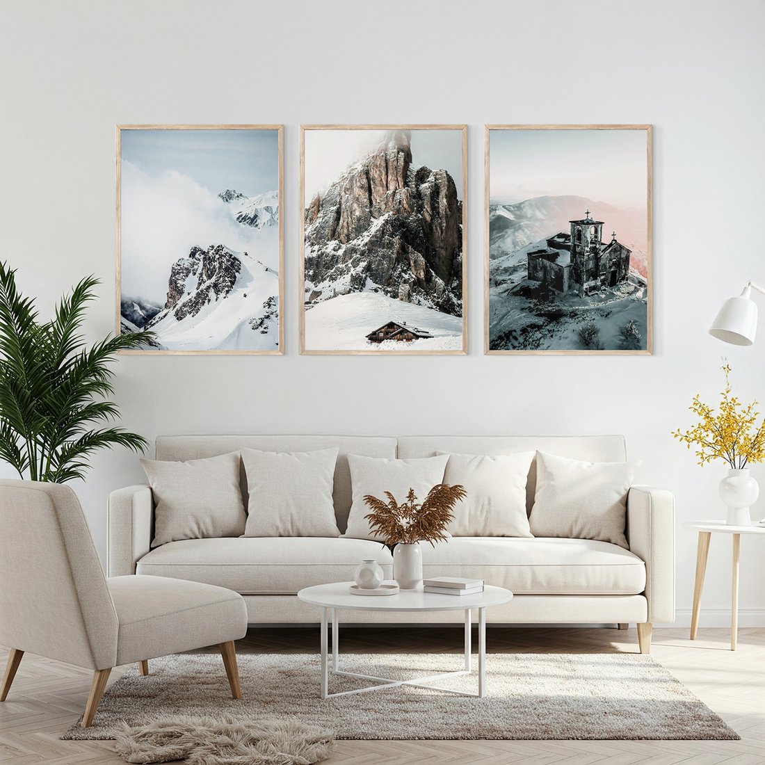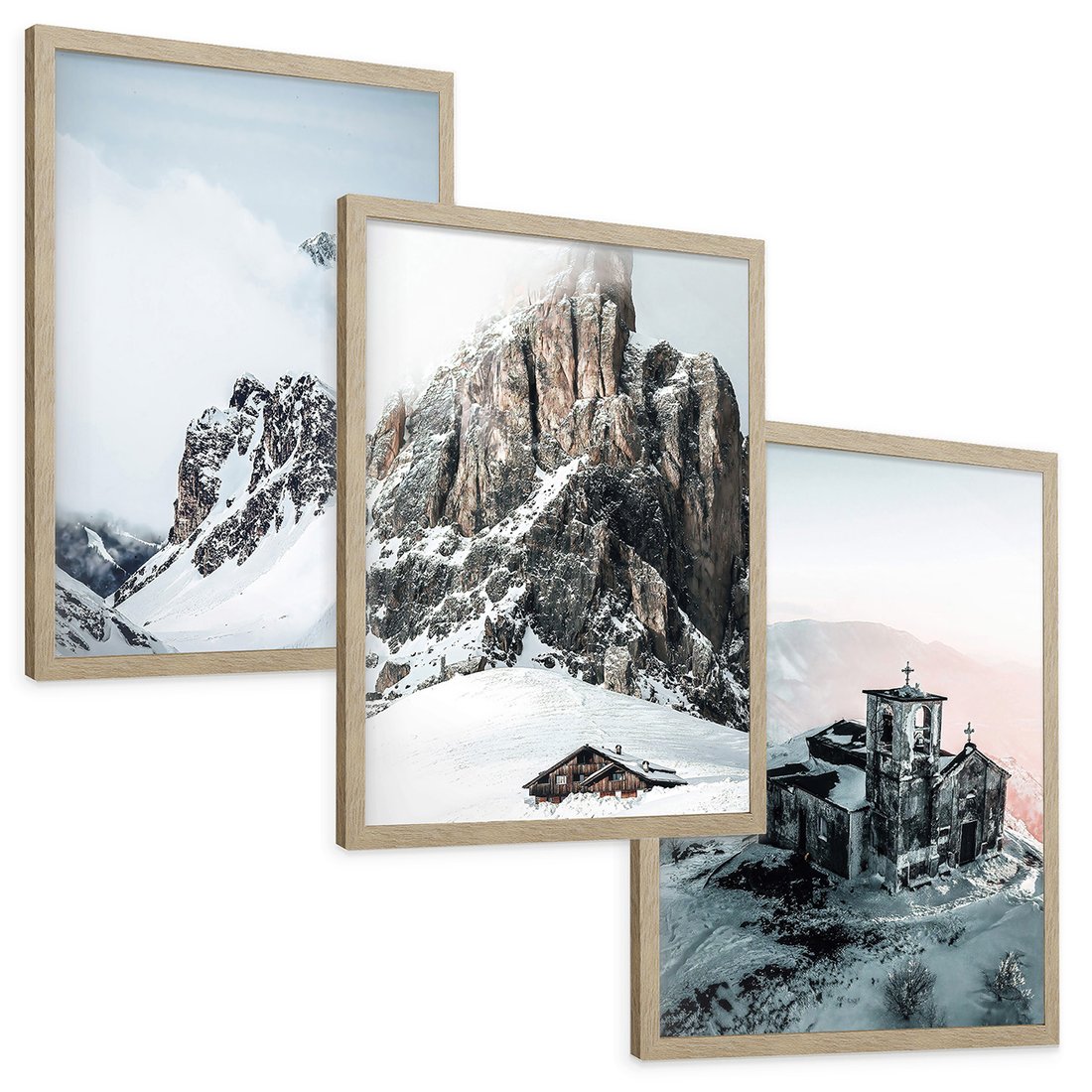 Zestaw obrazy w ramie, plakaty - góry, śnieg, zima - rama drewno