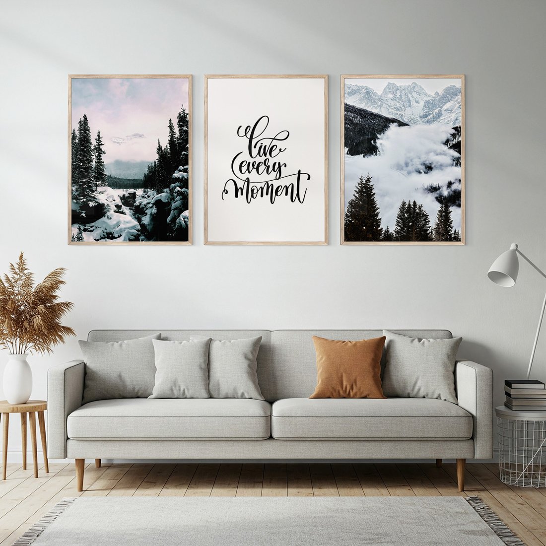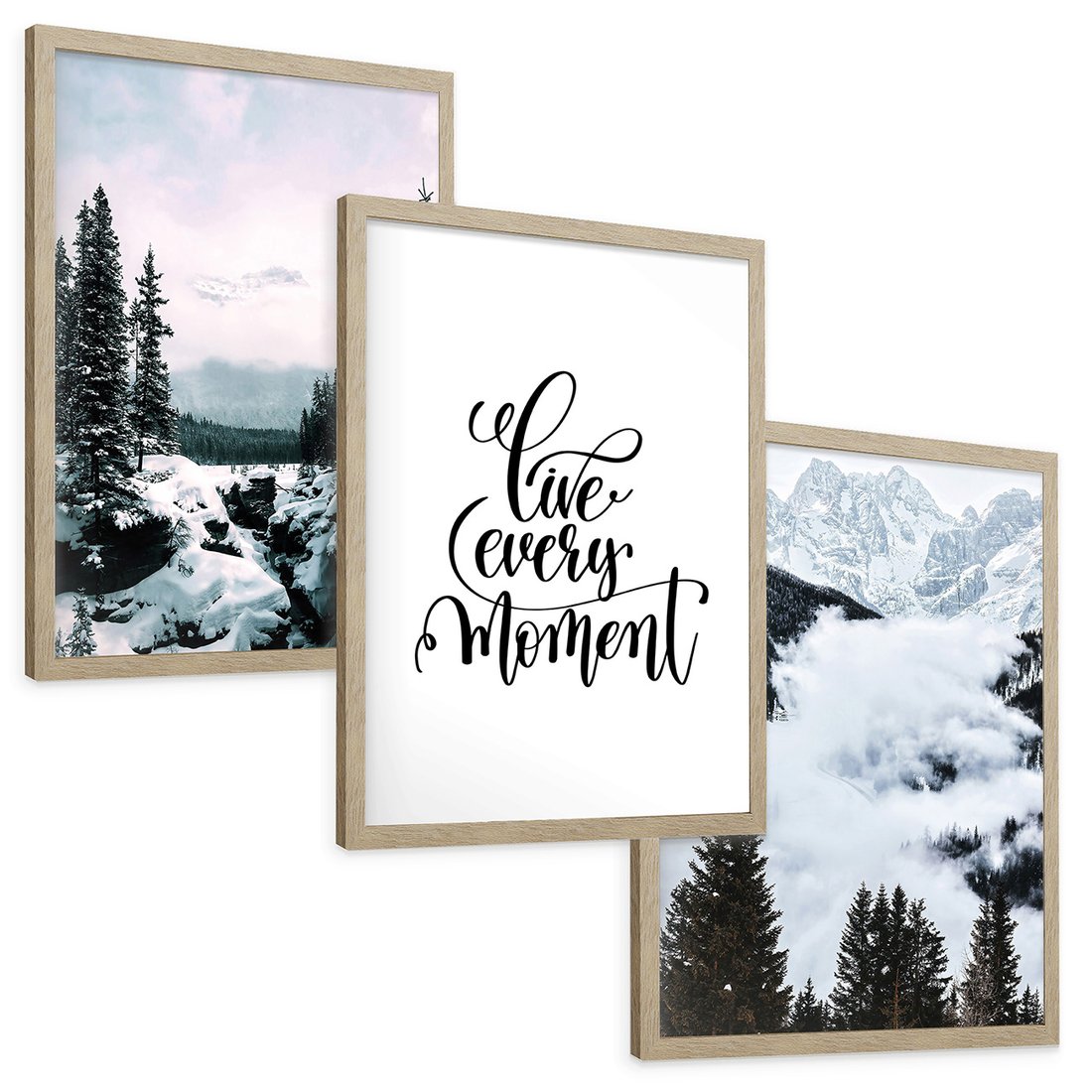 Zestaw obrazy w ramie, plakaty - góry, zima, lasy - rama drewno