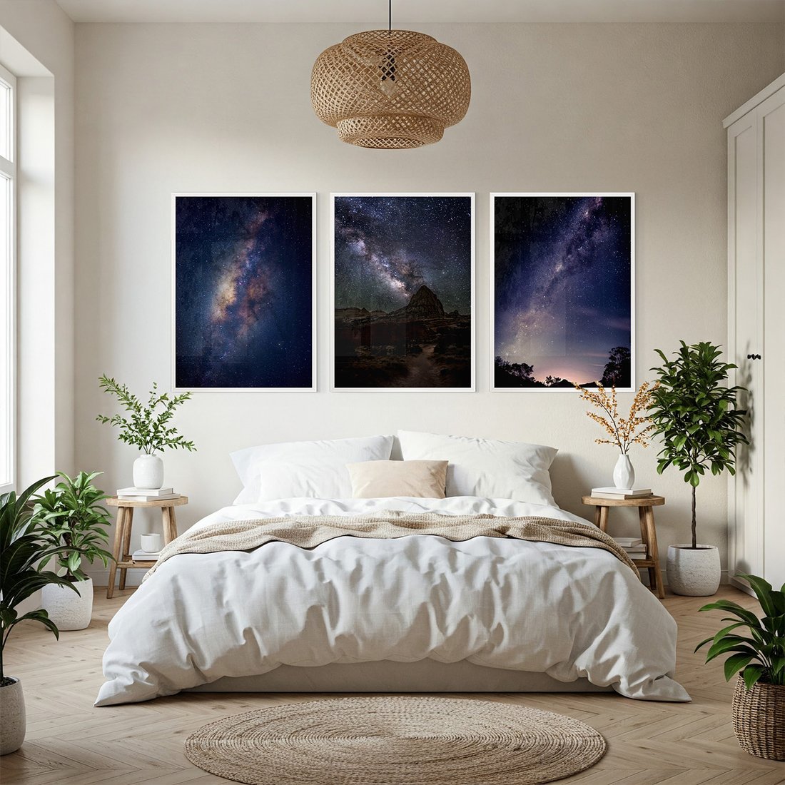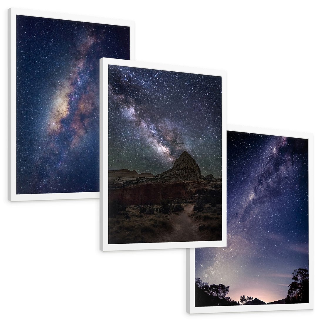 Zestaw obrazy w ramie, plakaty - gwiazdy, noc, galaktyka - rama biała