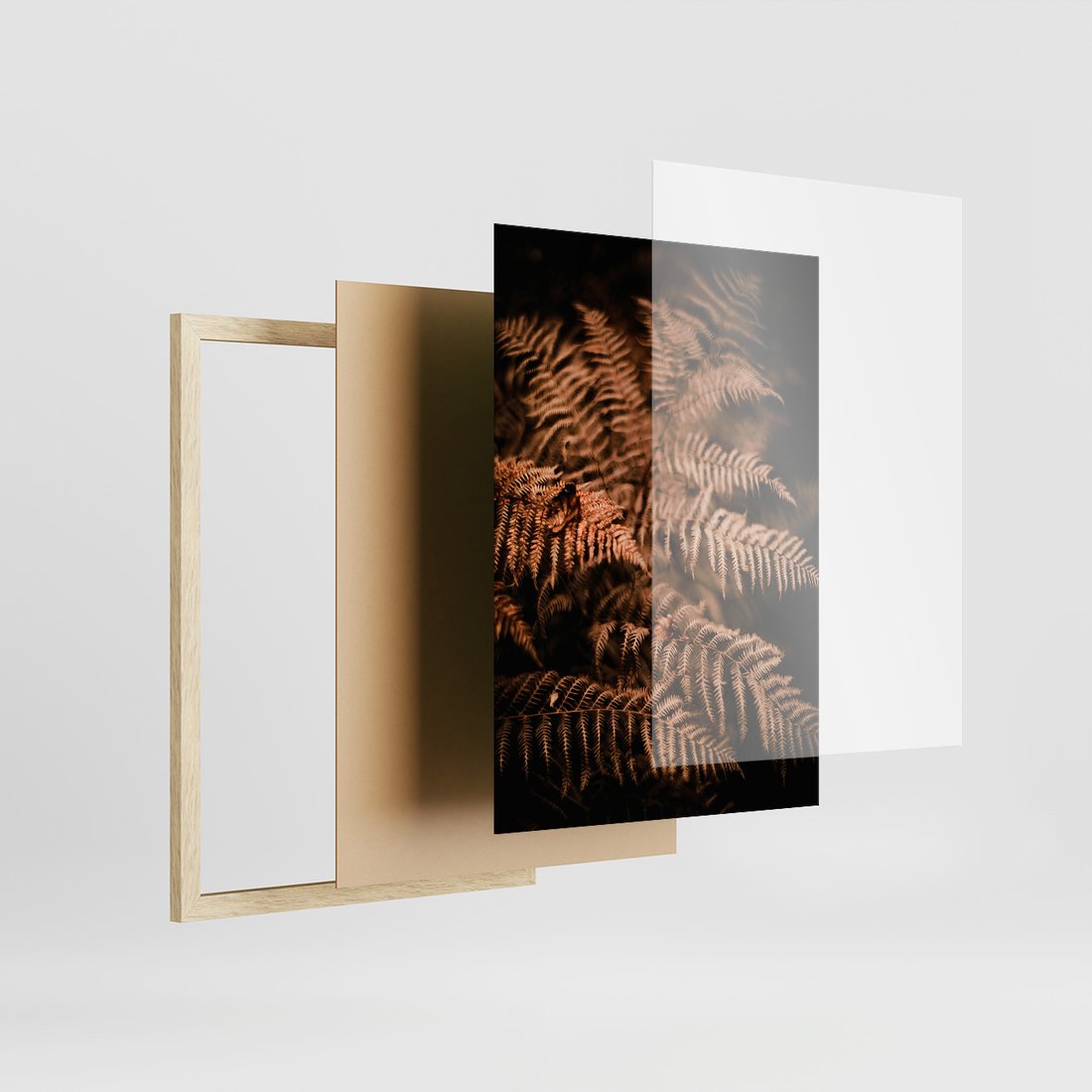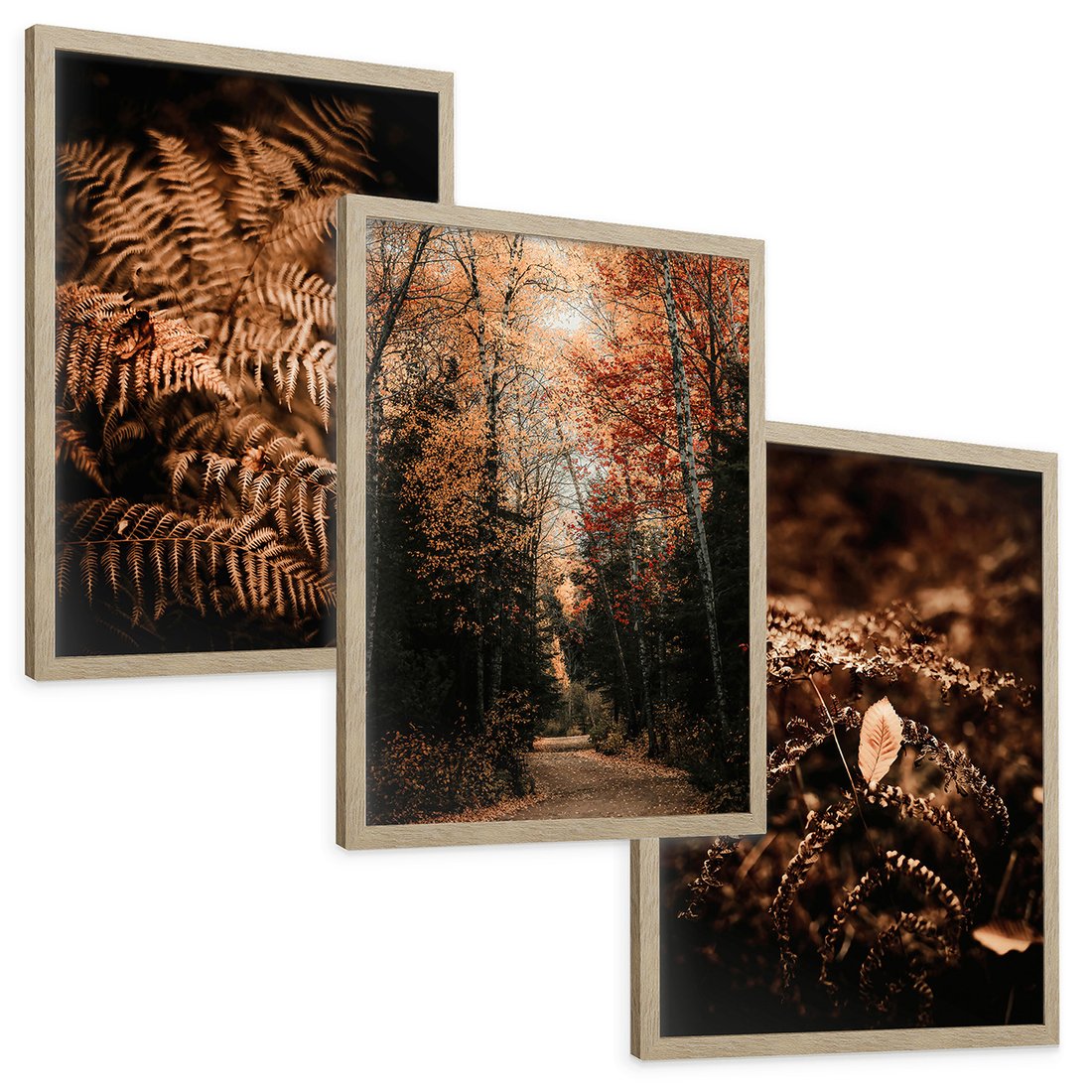 Zestaw obrazy w ramie, plakaty - jesień, liście, brązowy - rama drewno