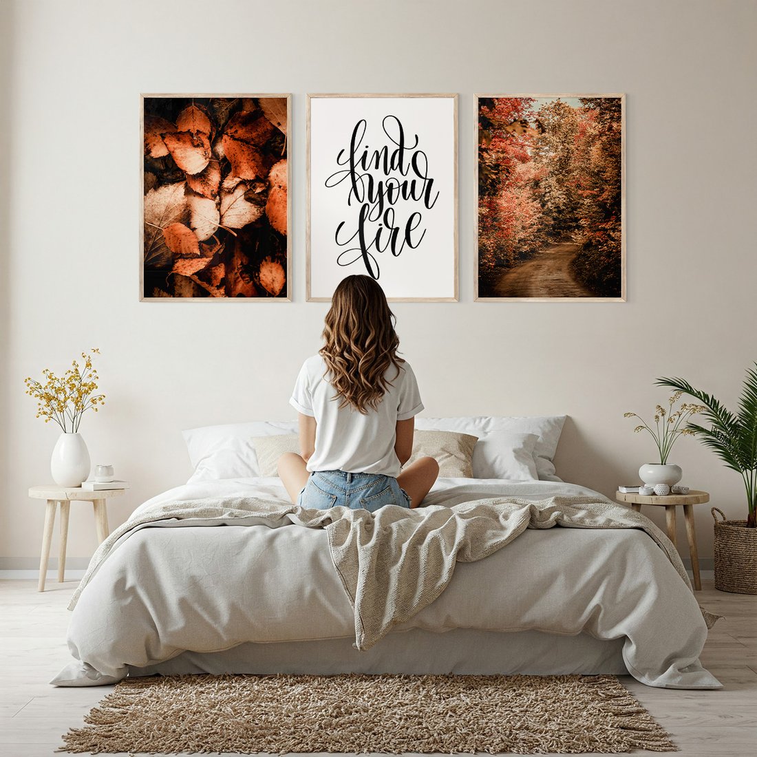 - Zestaw obrazy w ramie, plakaty - jesień, liście, las