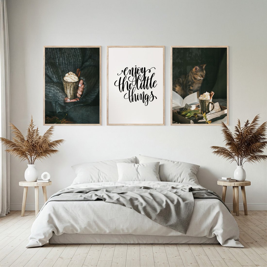 Przenieś piękno sztuki do swojego domu dzięki naszemu starannie skomponowanemu produktowi zestaw obrazów jesień, napój, kot. Każdy plakat, oprawiony w elegancką ramę, łączy w sobie estetykę i trwałość. Uniwersalne wzornictwo sprawia, że te dekoracje ścienne doskonale komponują się z różnymi stylami wnętrz, od nowoczesnych po klasyczne. Łatwość montażu pozwala na szybką i bezproblemową metamorfozę Twojej przestrzeni. To również idealny pomysł na wyszukany prezent, który z pewnością zachwyci.