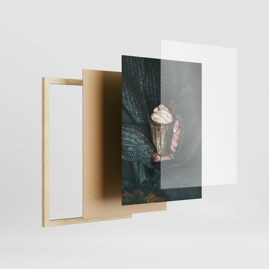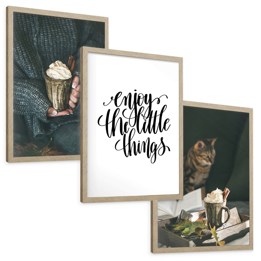 Zestaw obrazy w ramie, plakaty - jesień, napój, kot - rama drewno