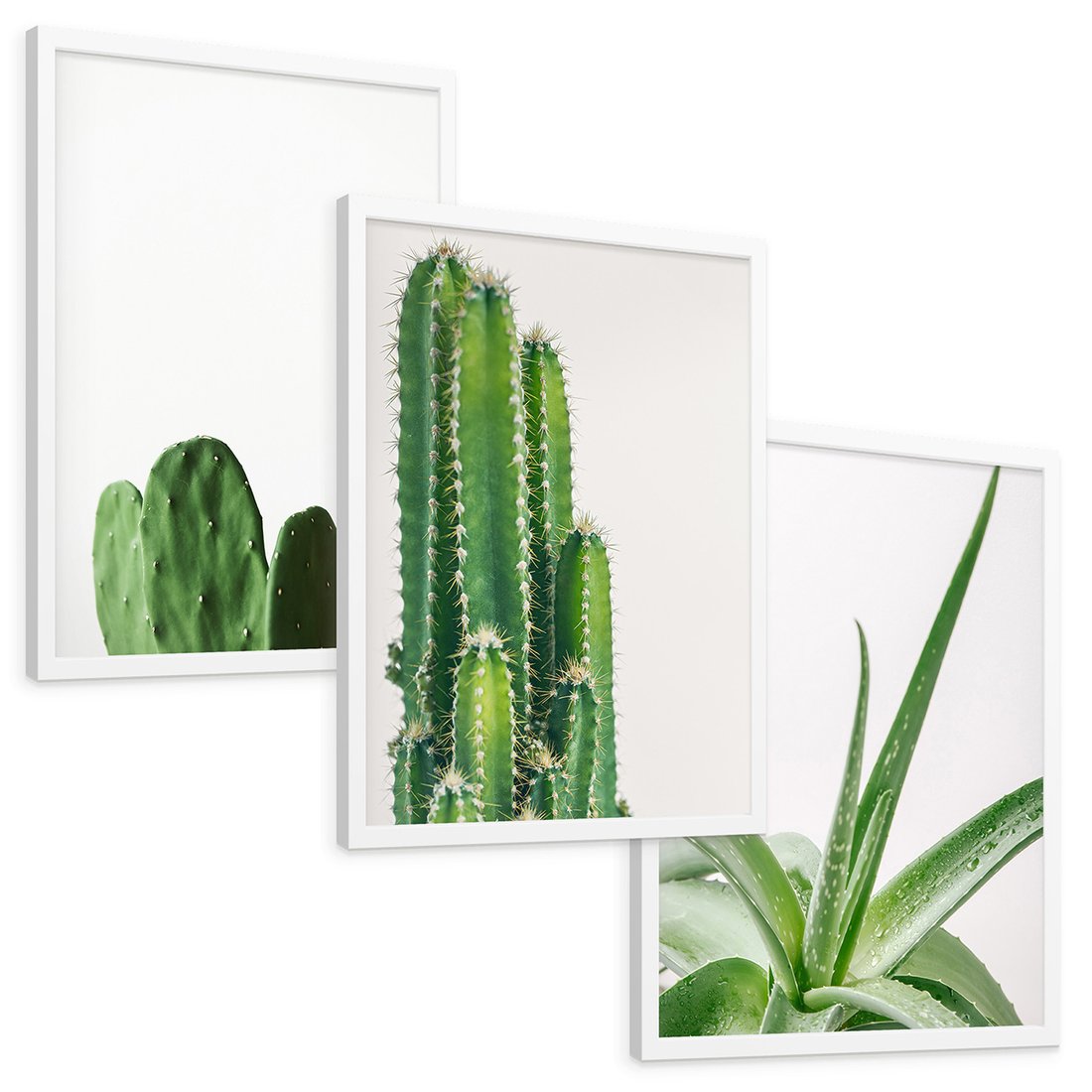 Zestaw obrazy w ramie, plakaty - kaktus, roślina, aloes - rama biała
