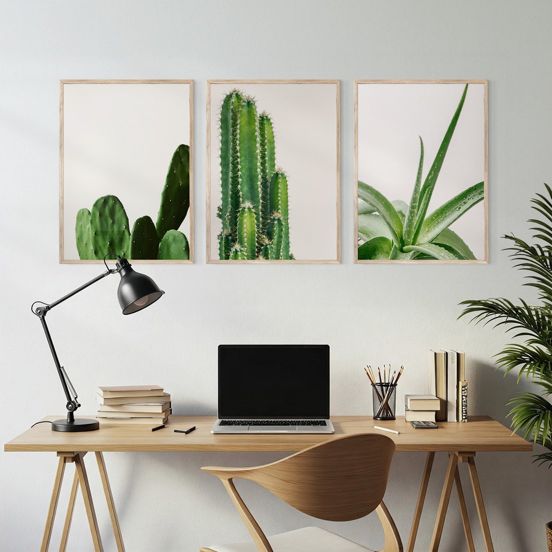 Zestaw obrazy w ramie, plakaty - kaktus, roślina, aloes - rama drewno