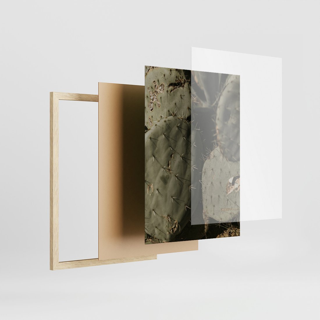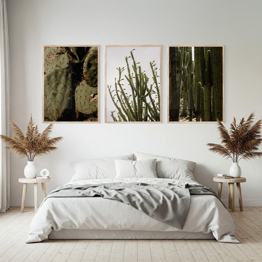 Zestaw obrazy w ramie, plakaty - kaktusy, rośliny, zielony - rama drewno
