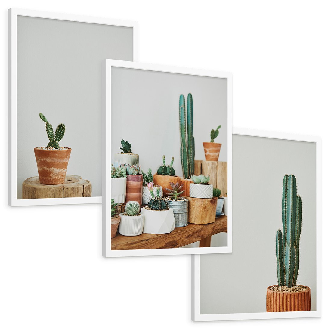 Zestaw obrazy w ramie, plakaty - kaktusy, sukulenty, rośliny - rama biała