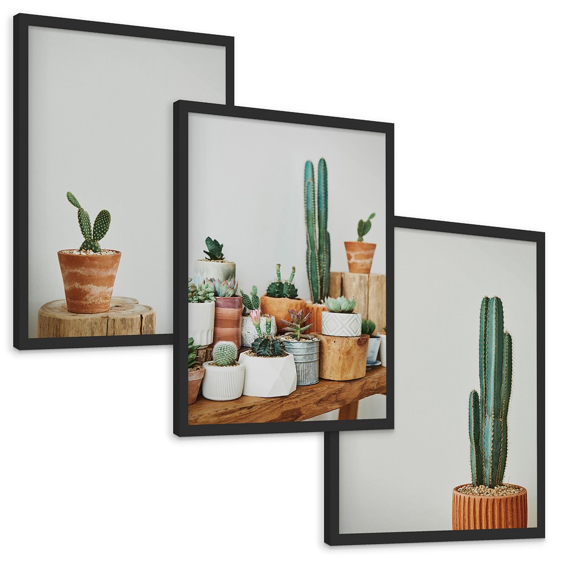 Zestaw obrazy w ramie, plakaty - kaktusy, sukulenty, rośliny - rama czarna