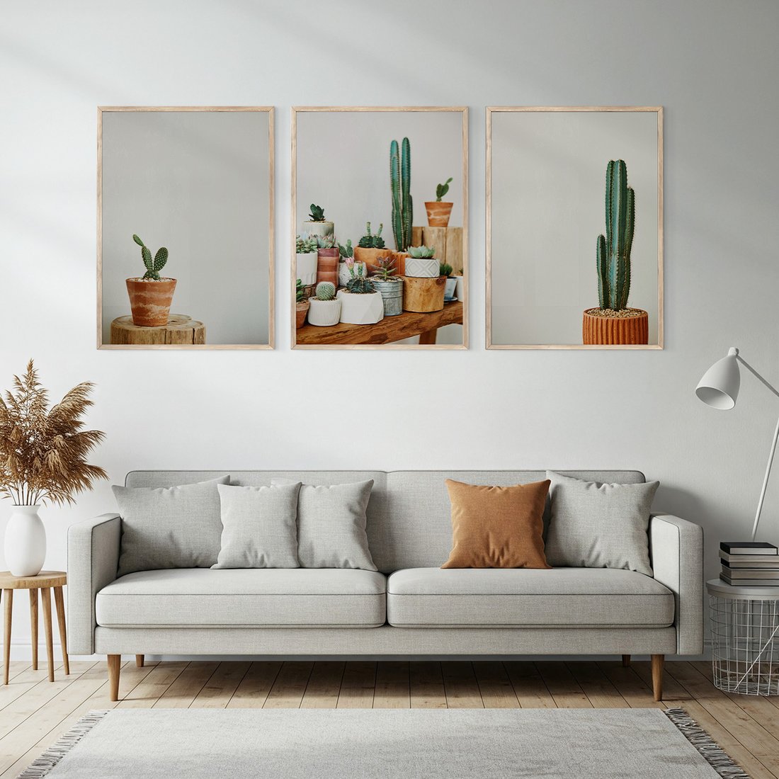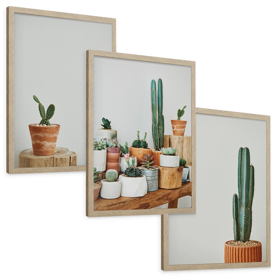 Zestaw obrazy w ramie, plakaty - kaktusy, sukulenty, rośliny - rama drewno