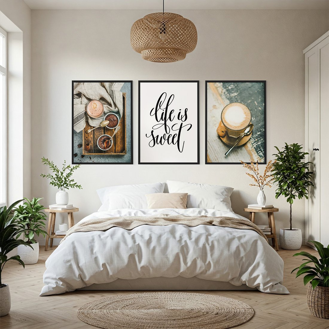 Przenieś piękno sztuki do swojego domu dzięki naszemu starannie skomponowanemu produktowi zestaw obrazów kawa, deser, napój. Każdy plakat, oprawiony w elegancką ramę, łączy w sobie estetykę i trwałość. Uniwersalne wzornictwo sprawia, że te dekoracje ścienne doskonale komponują się z różnymi stylami wnętrz, od nowoczesnych po klasyczne. Łatwość montażu pozwala na szybką i bezproblemową metamorfozę Twojej przestrzeni. To również idealny pomysł na wyszukany prezent, który z pewnością zachwyci.