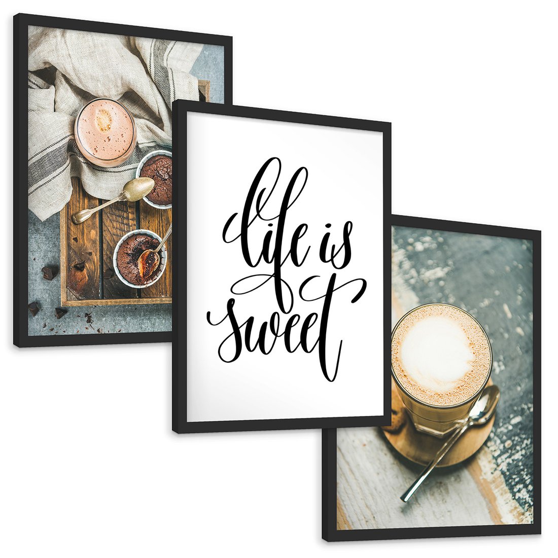 - Zestaw obrazy w ramie, plakaty - kawa, deser, napój