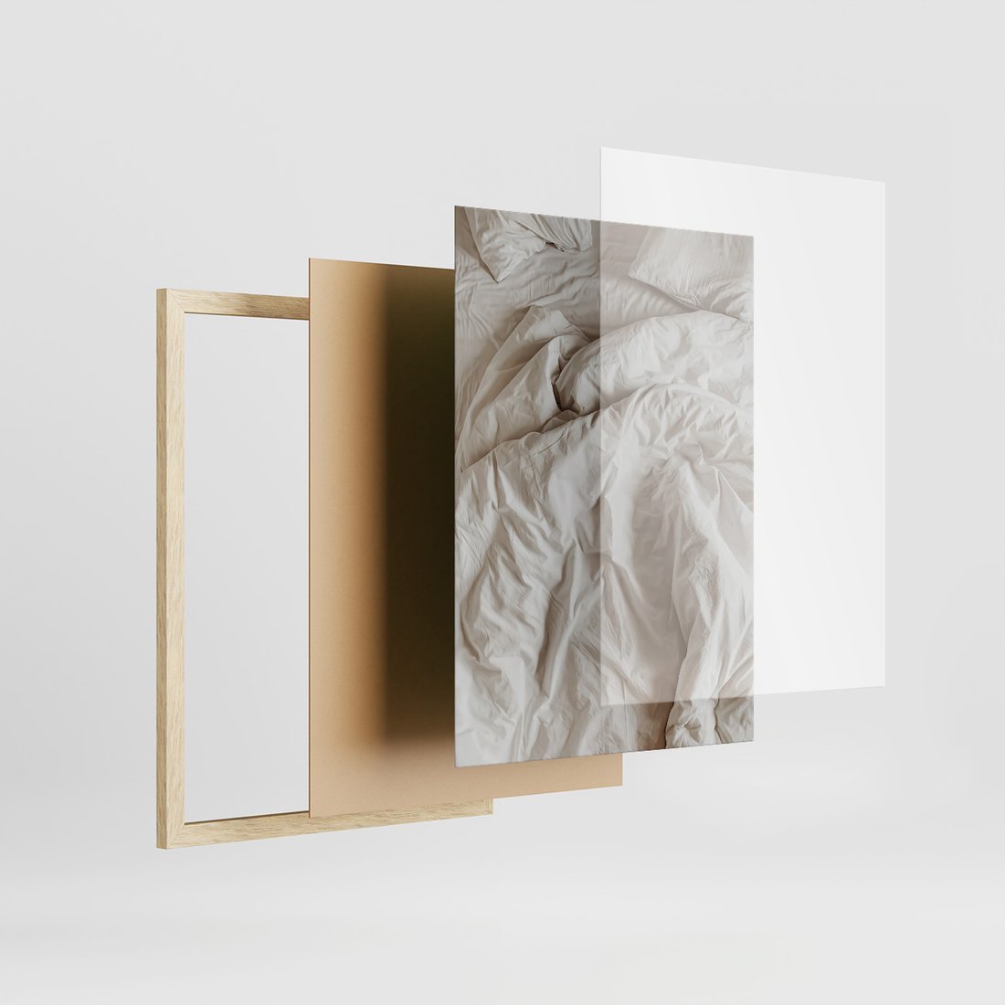 Zestaw obrazy w ramie, plakaty - kawa, łóżko, minimalizm - rama drewno