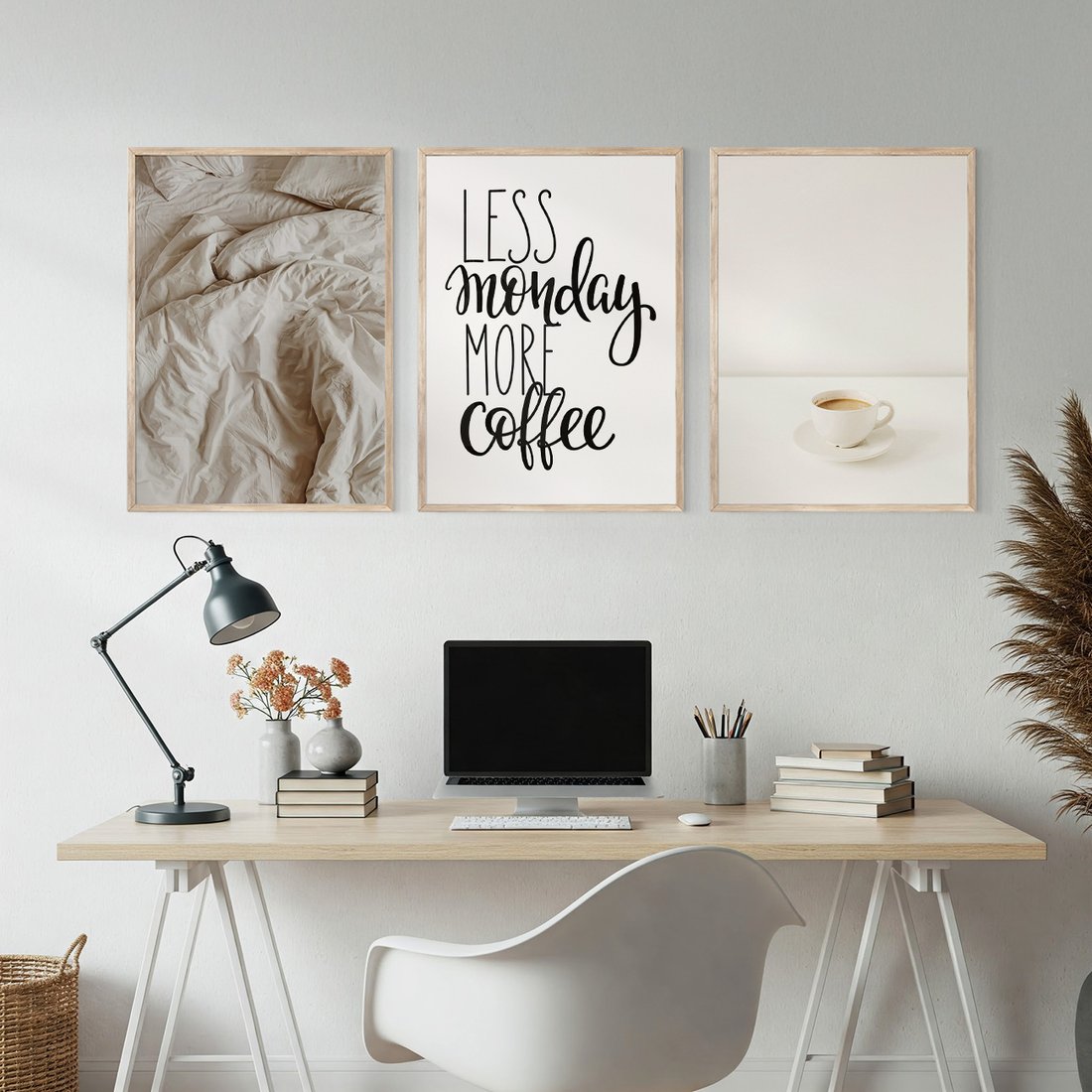 - Zestaw obrazy w ramie, plakaty - kawa, łóżko, minimalizm