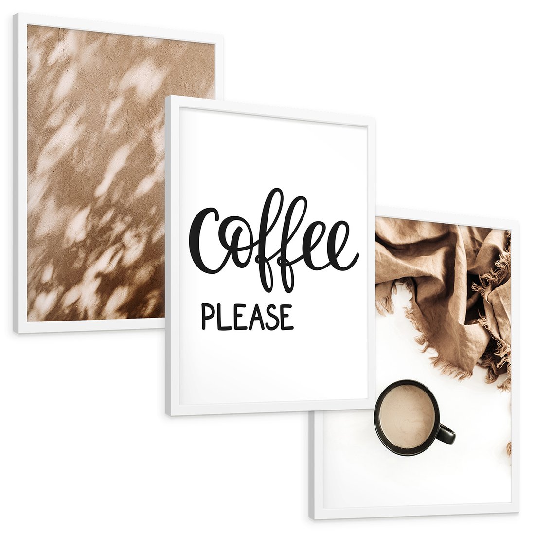 Zestaw obrazy w ramie, plakaty - kawa, napój, tekst - rama biała