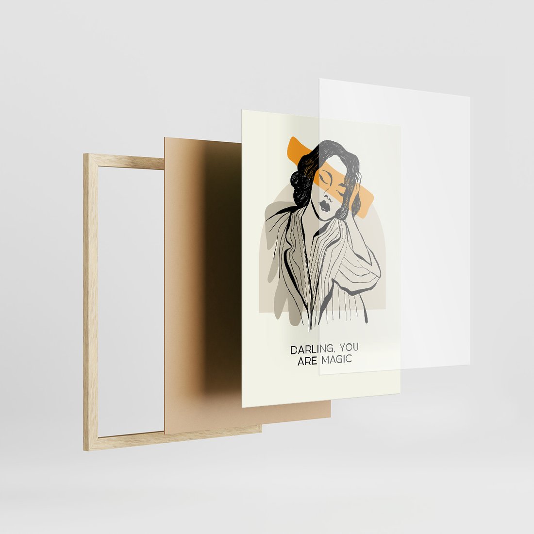 Zestaw obrazy w ramie, plakaty - kobieta, rysunek, portret - rama drewno