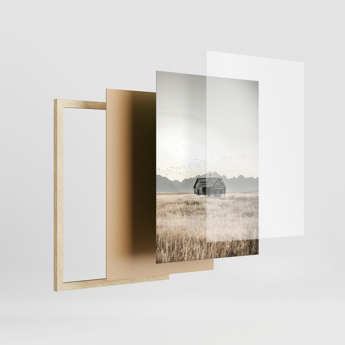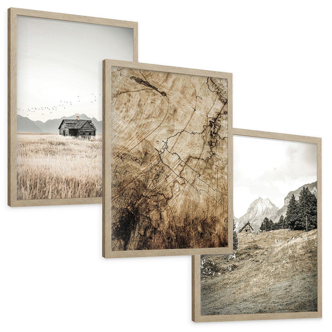 Zestaw obrazy w ramie, plakaty - krajobraz, natura, dom - rama drewno