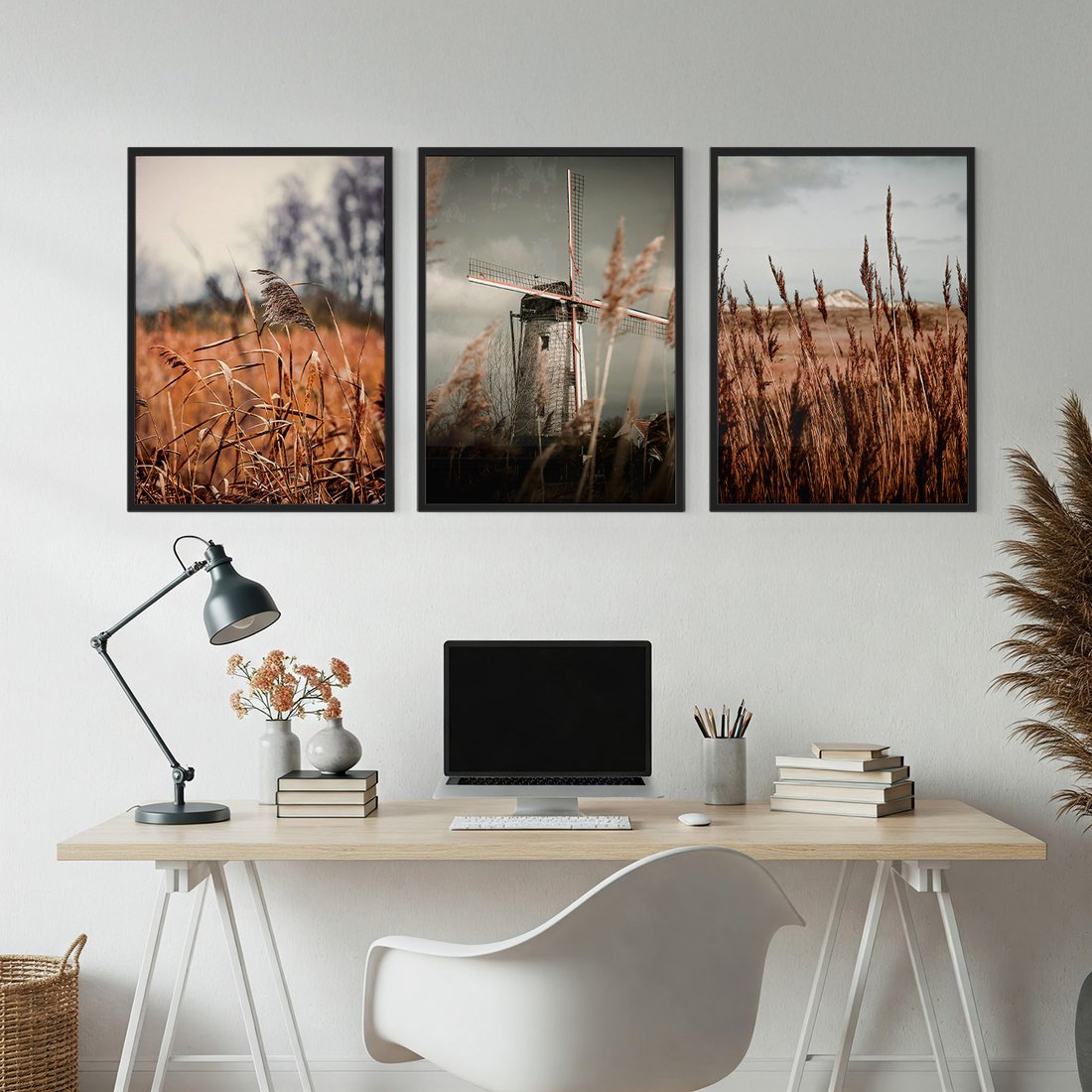 - Zestaw obrazy w ramie, plakaty - krajobraz, wiatrak, natura