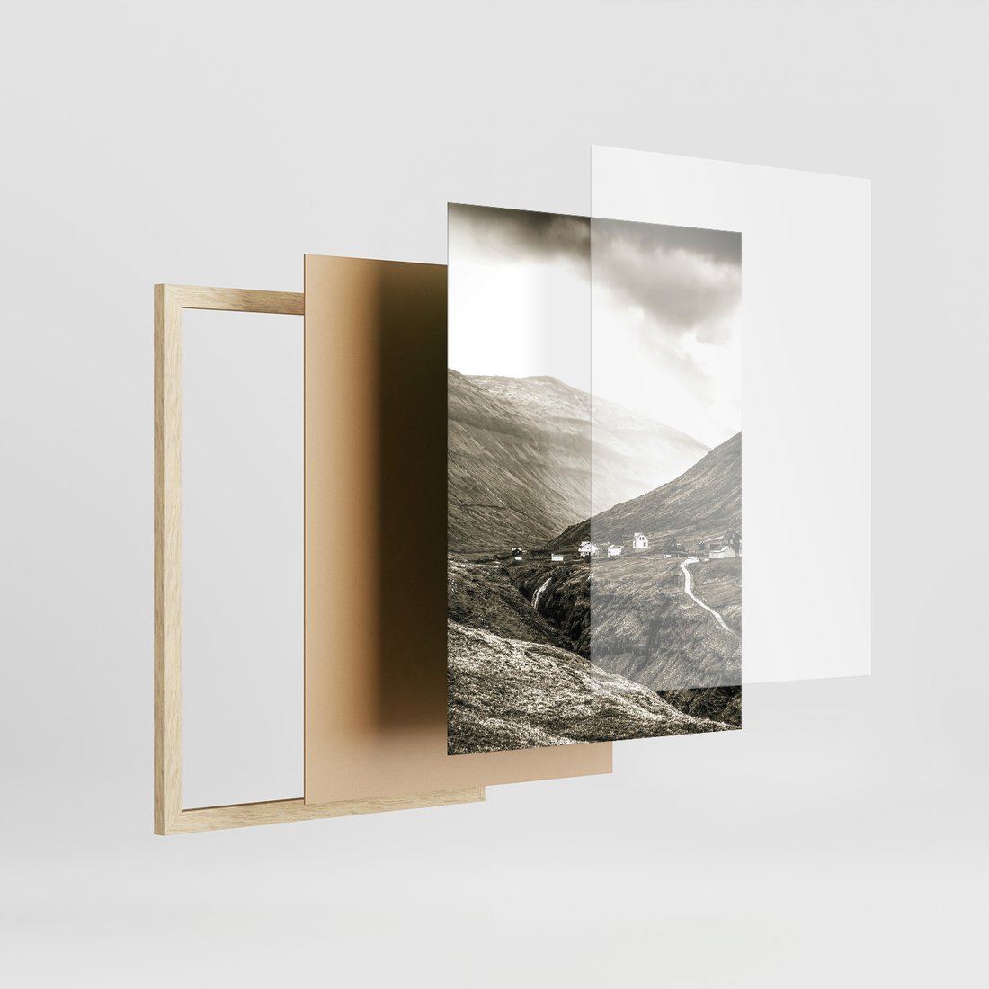 Zestaw obrazy w ramie, plakaty - krajobraz, zwierzę, góry - rama drewno