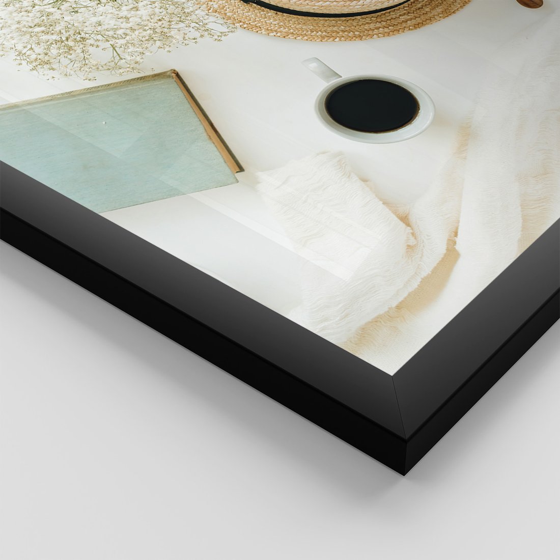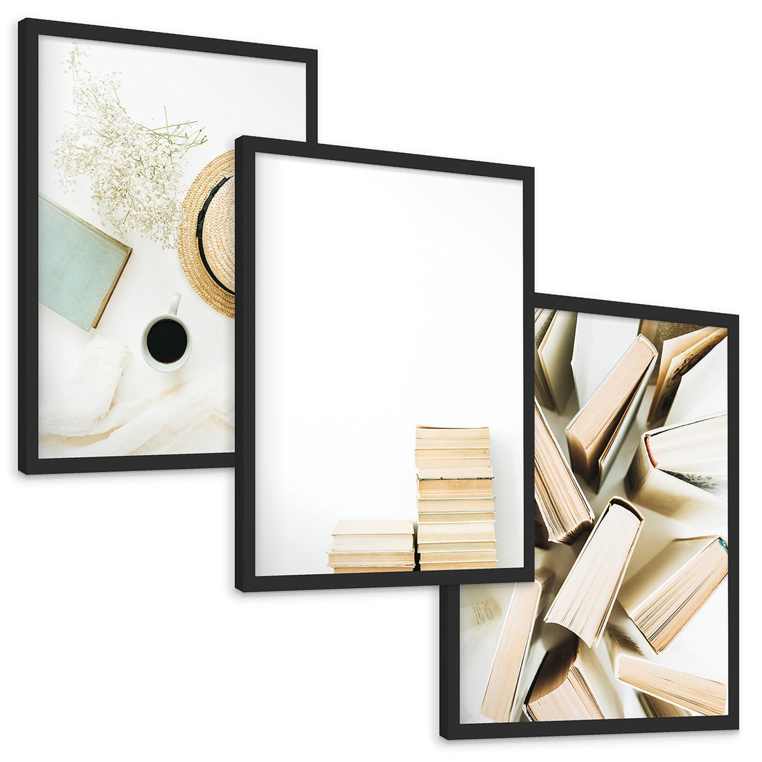 Zestaw obrazy w ramie, plakaty - książki, kapelusz, kwiaty - rama czarna