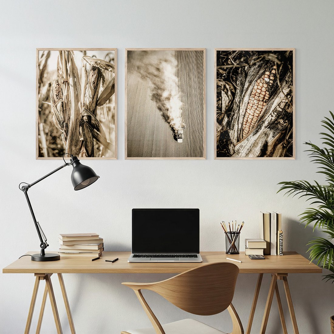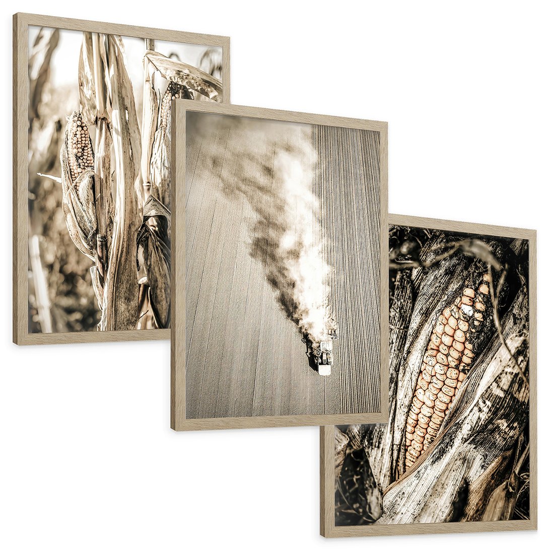Zestaw obrazy w ramie, plakaty - kukurydza, pole, rolnictwo - rama drewno