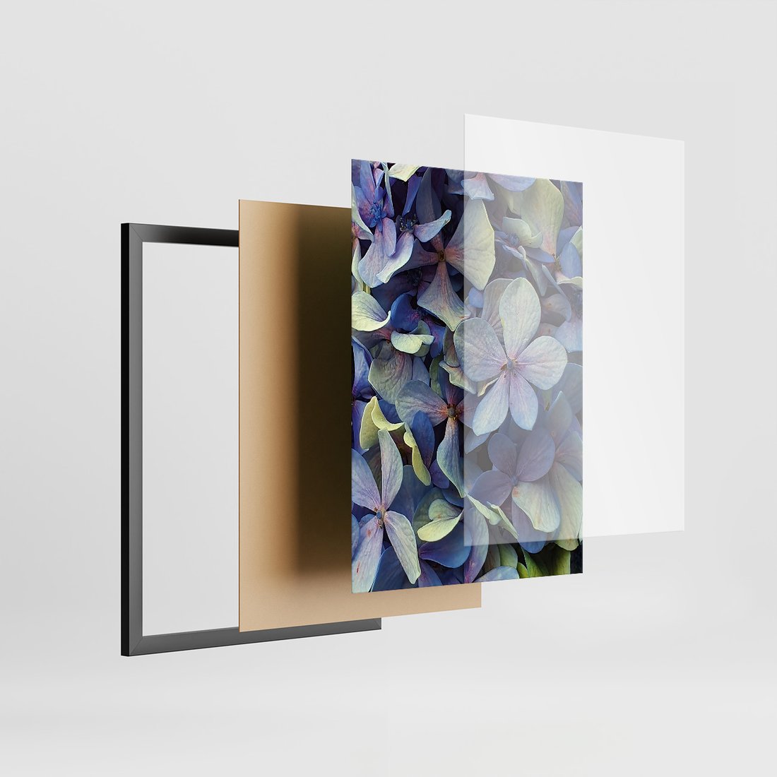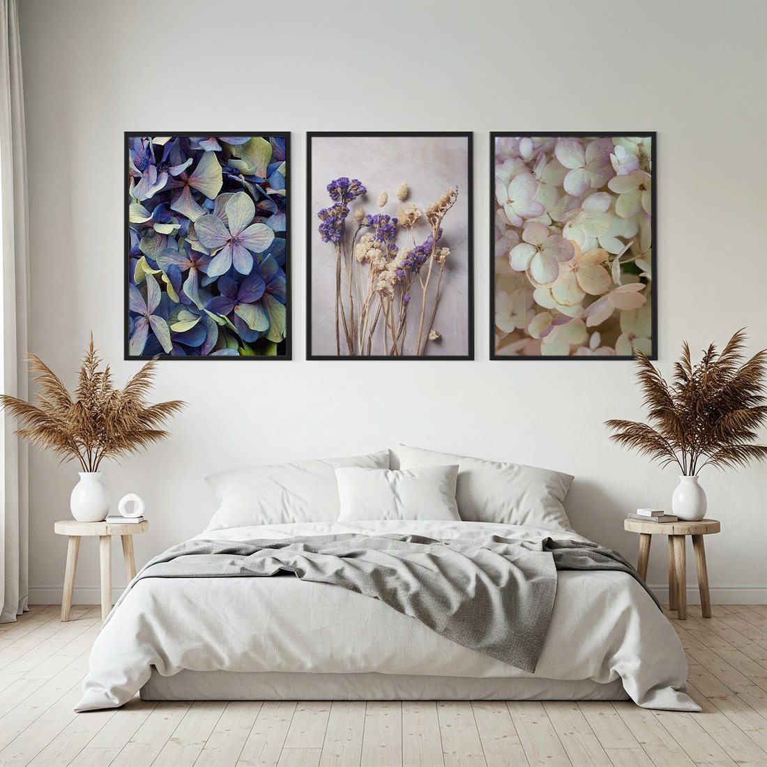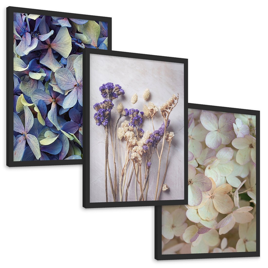 Zestaw obrazy w ramie, plakaty - kwiaty, hortensje, suszone kwiaty - rama czarna
