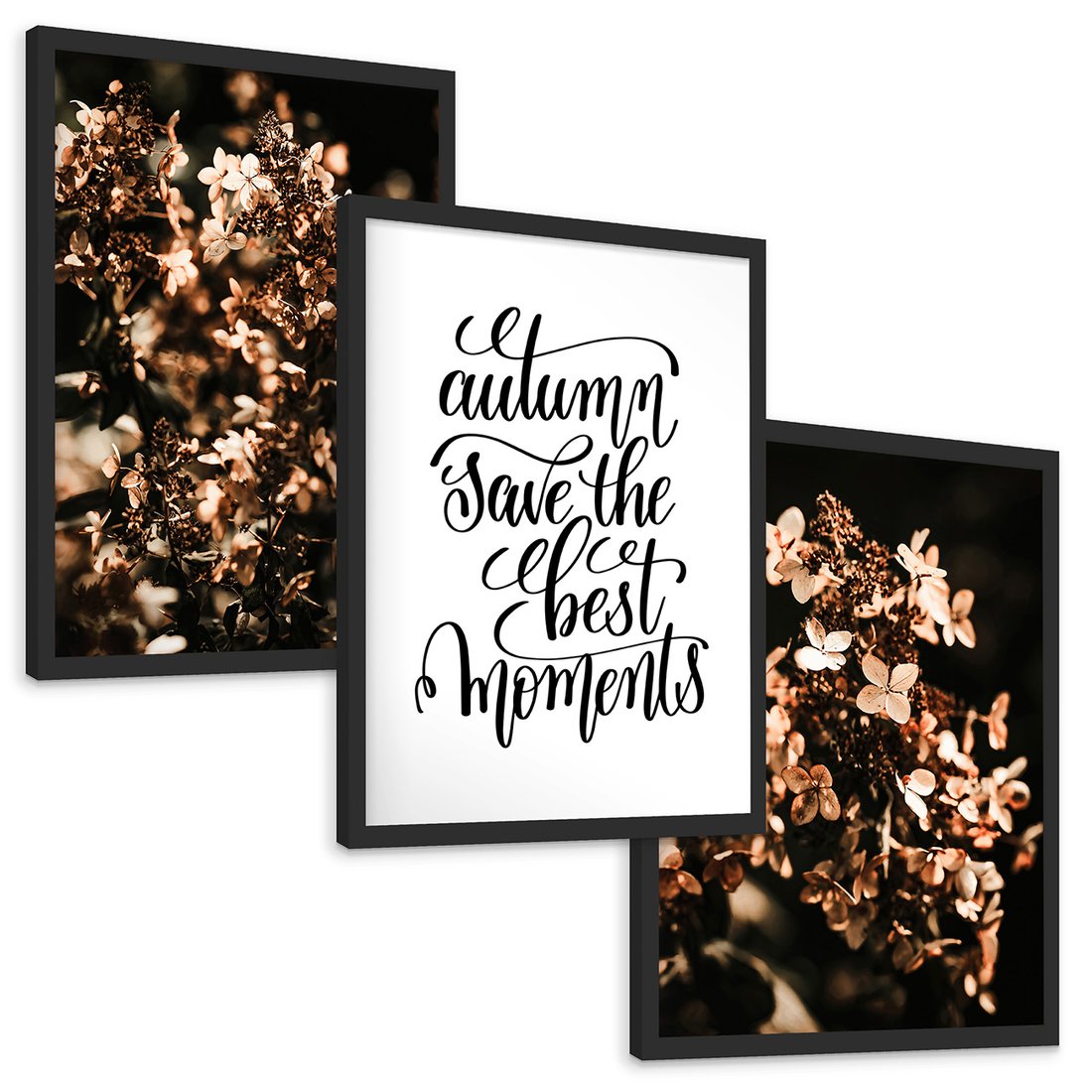 Zestaw obrazy w ramie, plakaty - kwiaty, jesień, dekoracja - rama czarna