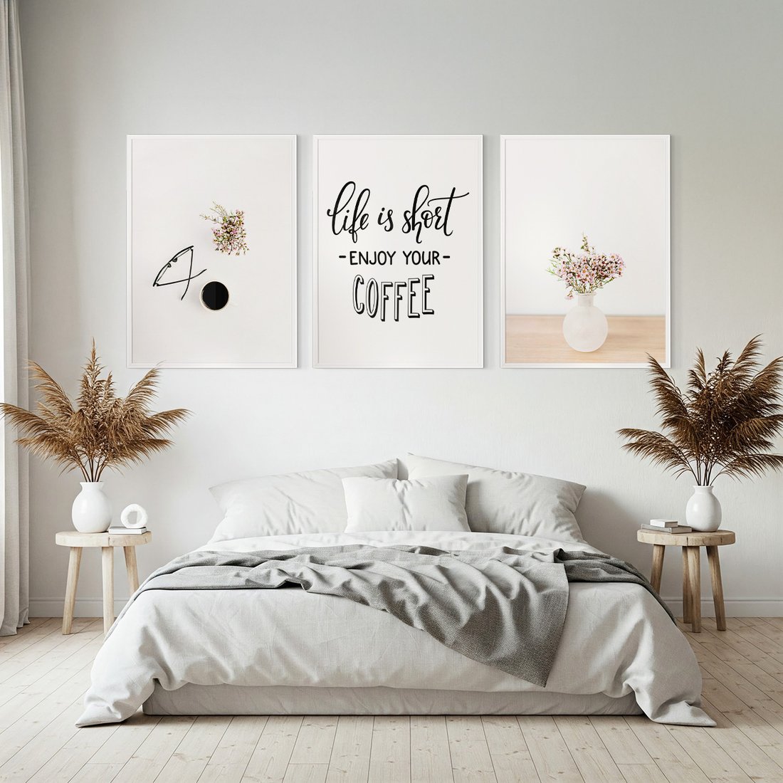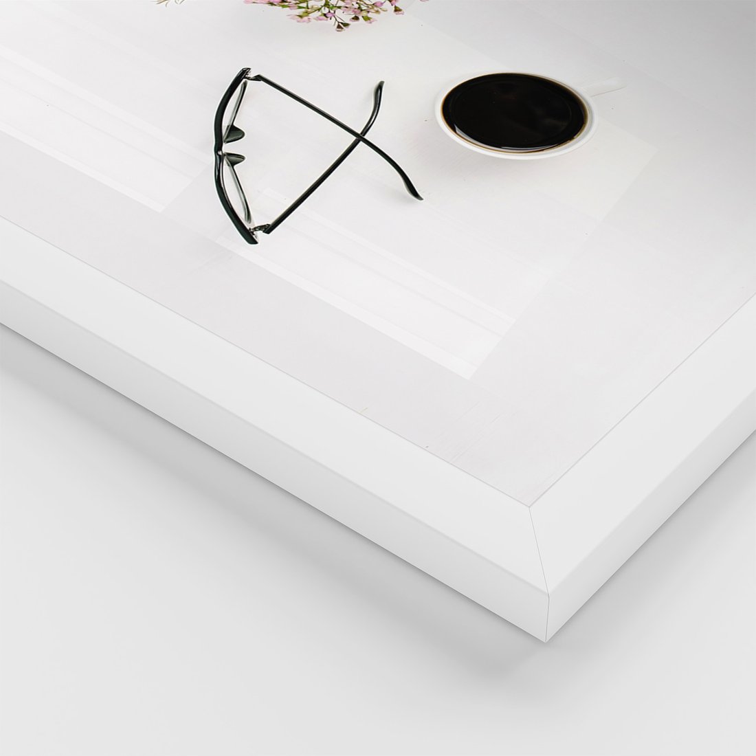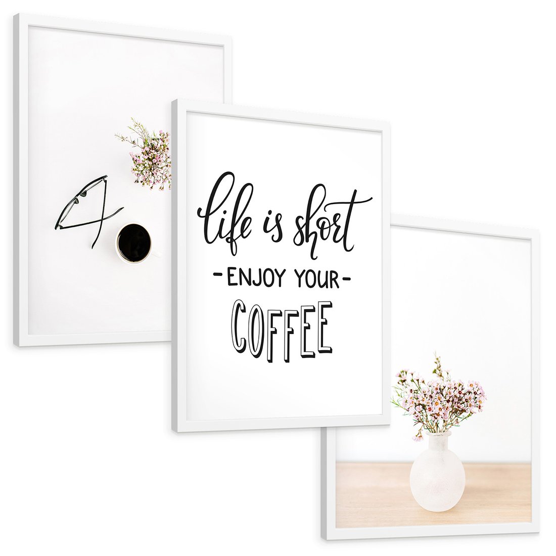 Zestaw obrazy w ramie, plakaty - kwiaty, kawa, okulary - rama biała