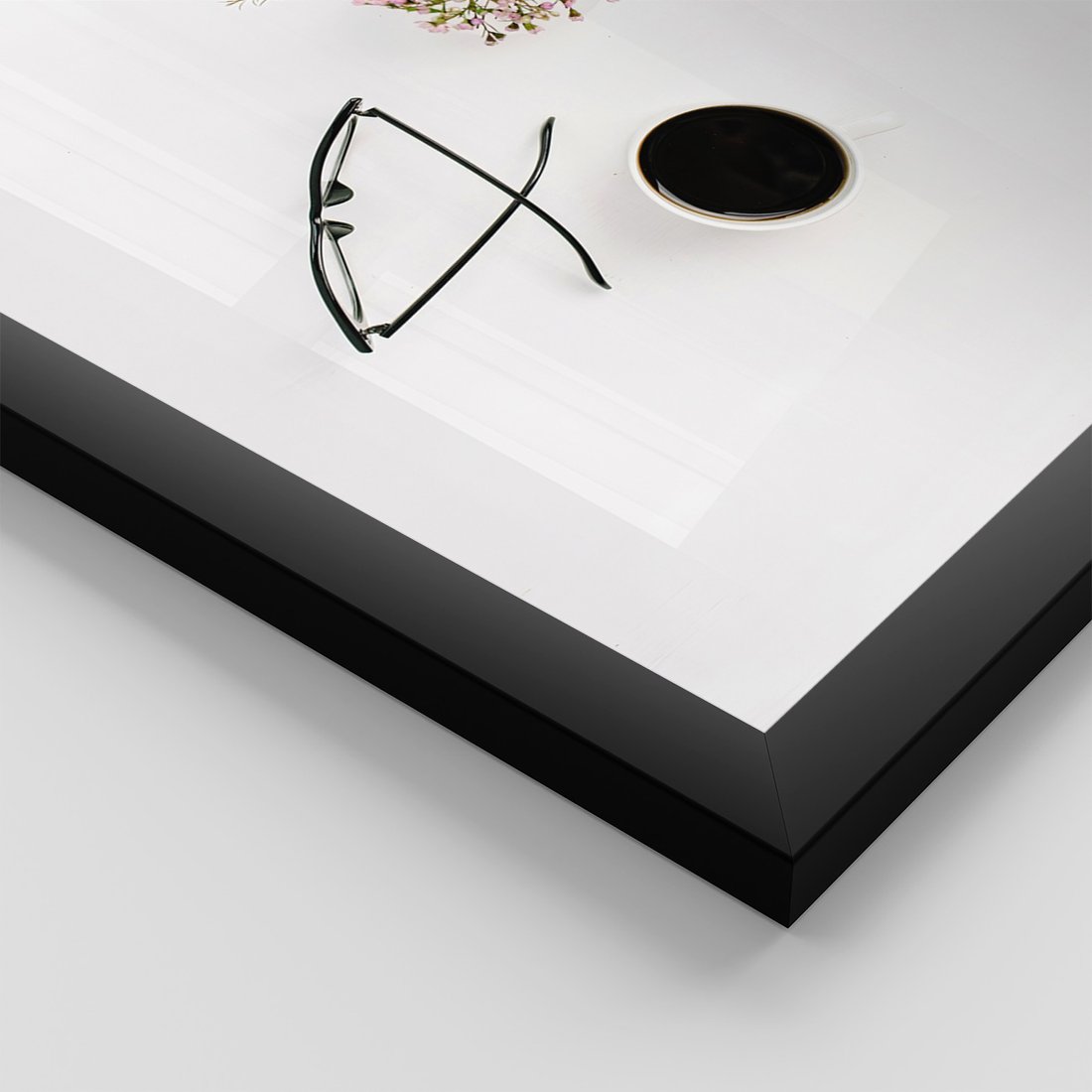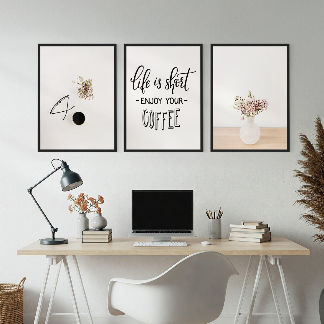 Zestaw obrazy w ramie, plakaty - kwiaty, kawa, okulary - rama czarna
