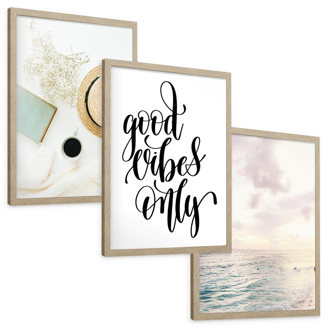 Zestaw obrazy w ramie, plakaty - kwiaty, lato, morze - rama drewno