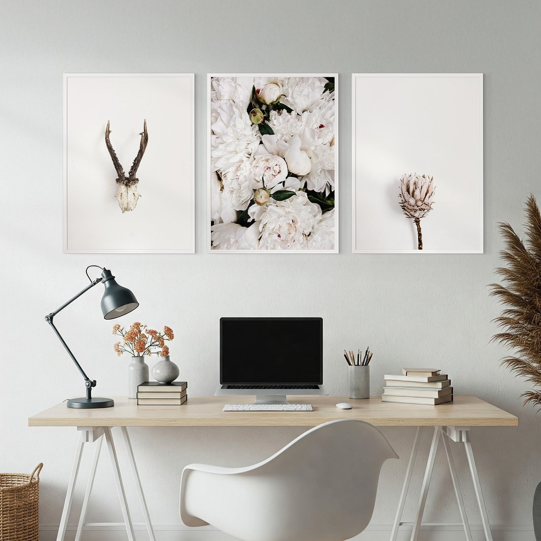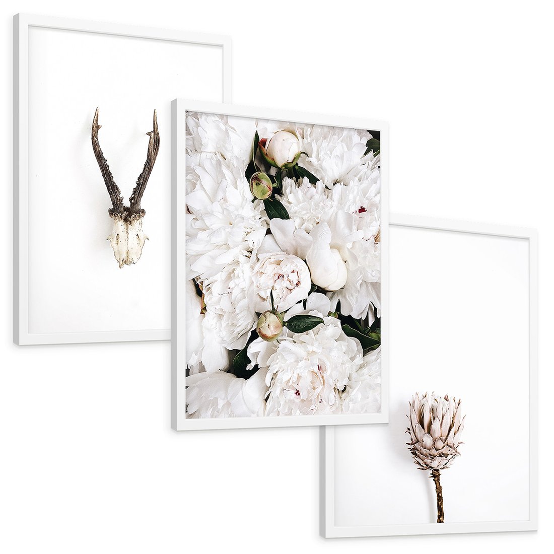 Zestaw obrazy w ramie, plakaty - kwiaty, minimalizm, roślina - rama biała