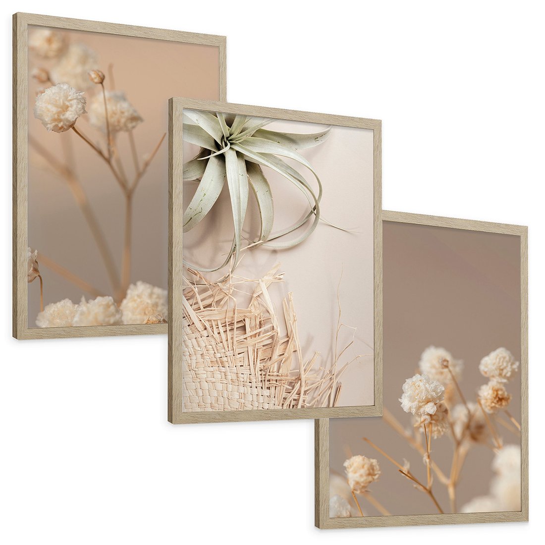 Zestaw obrazy w ramie, plakaty - kwiaty, roślina, suszone - rama drewno