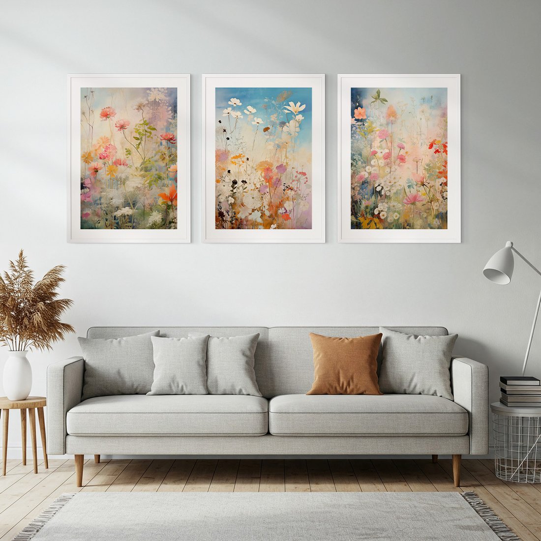 Zestaw obrazy w ramie, plakaty - kwiaty, rośliny, delikatne - rama biała