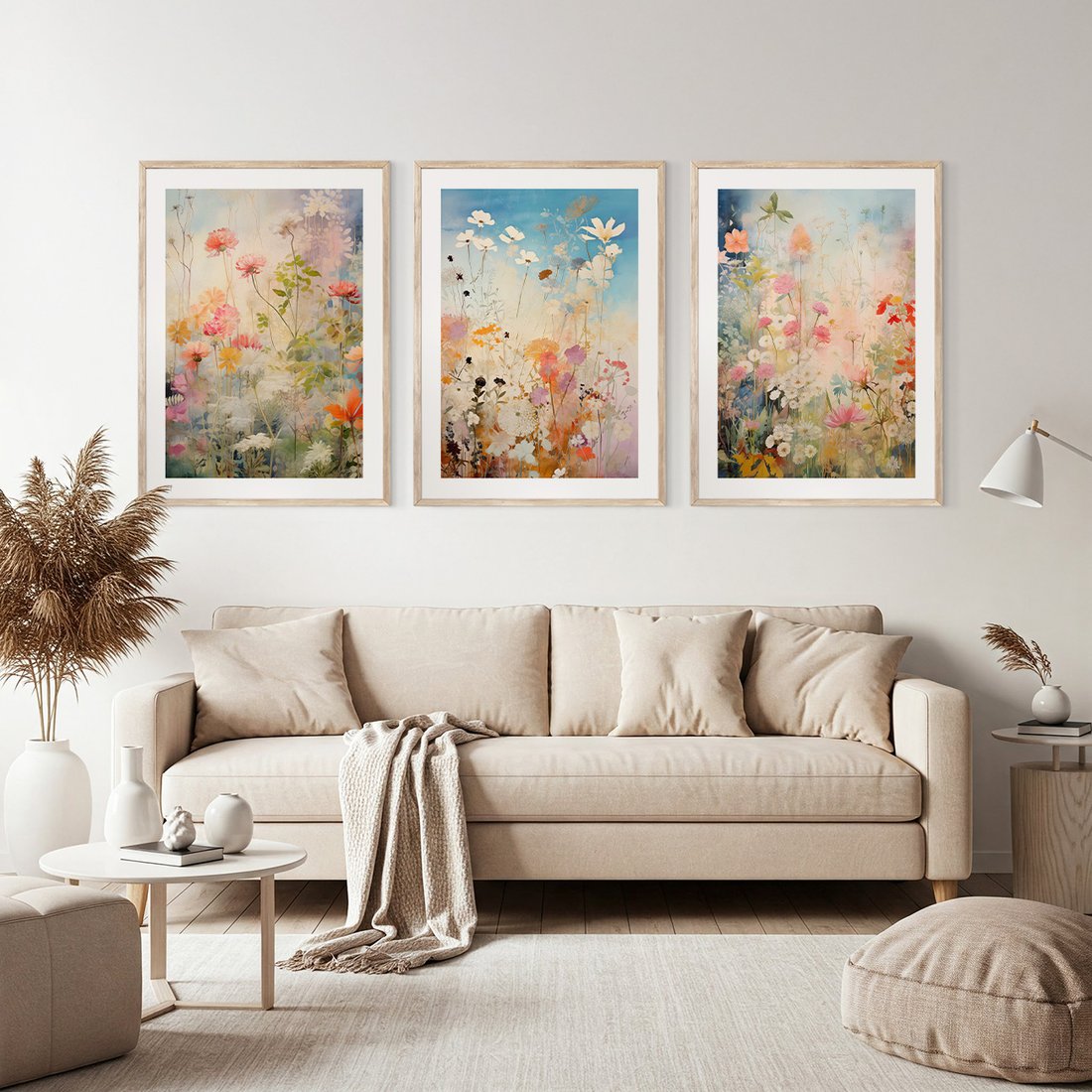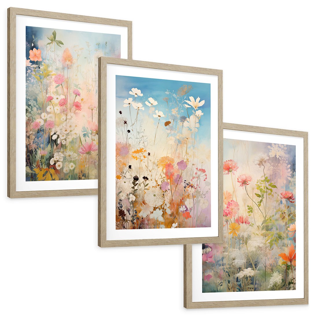 Zestaw obrazy w ramie, plakaty - kwiaty, rośliny, delikatne - rama drewno