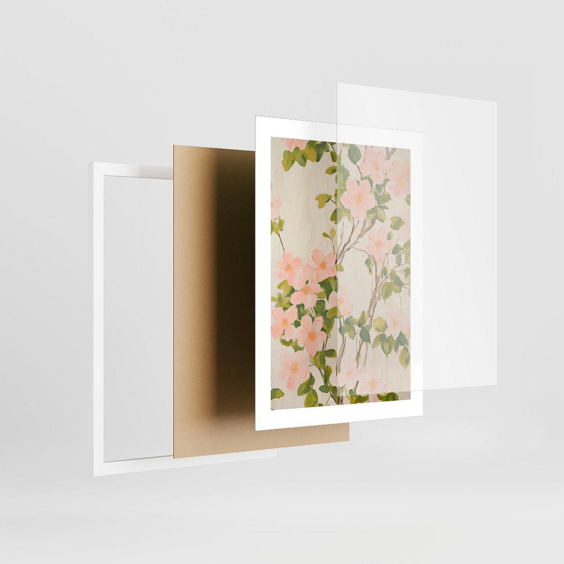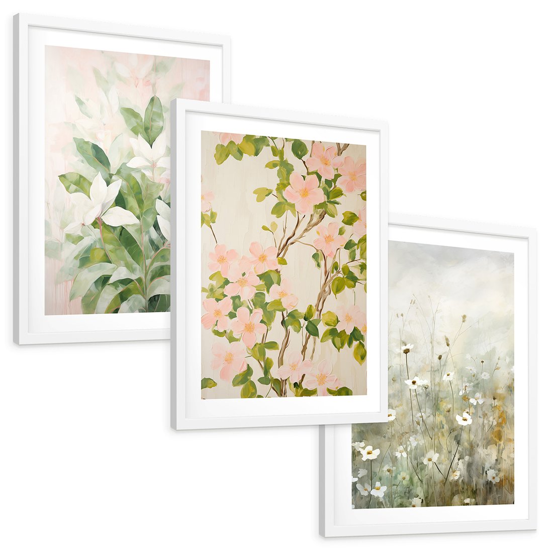 Zestaw obrazy w ramie, plakaty - kwiaty, rośliny, pastelowe - rama biała