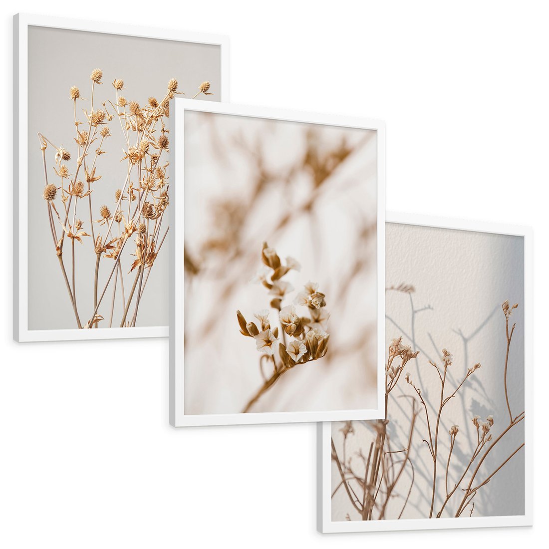 Zestaw obrazy w ramie, plakaty - kwiaty,rośliny,suszone, - rama biała