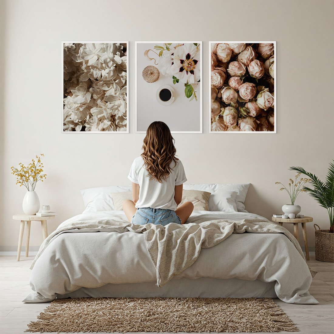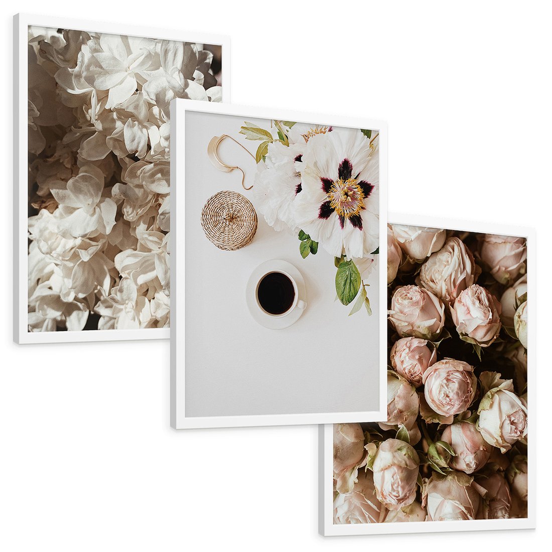 Zestaw obrazy w ramie, plakaty - kwiaty, róże, bukiet - rama biała