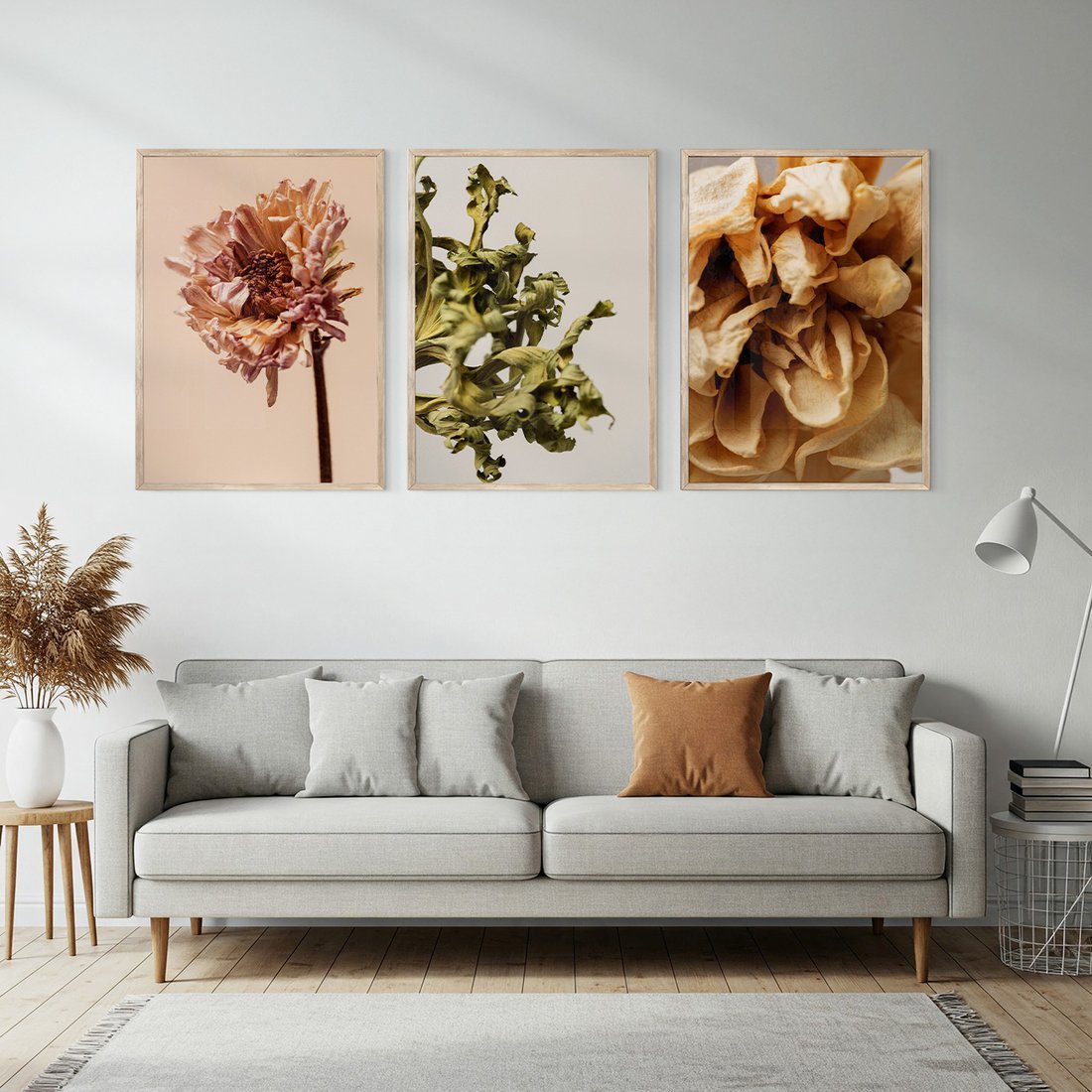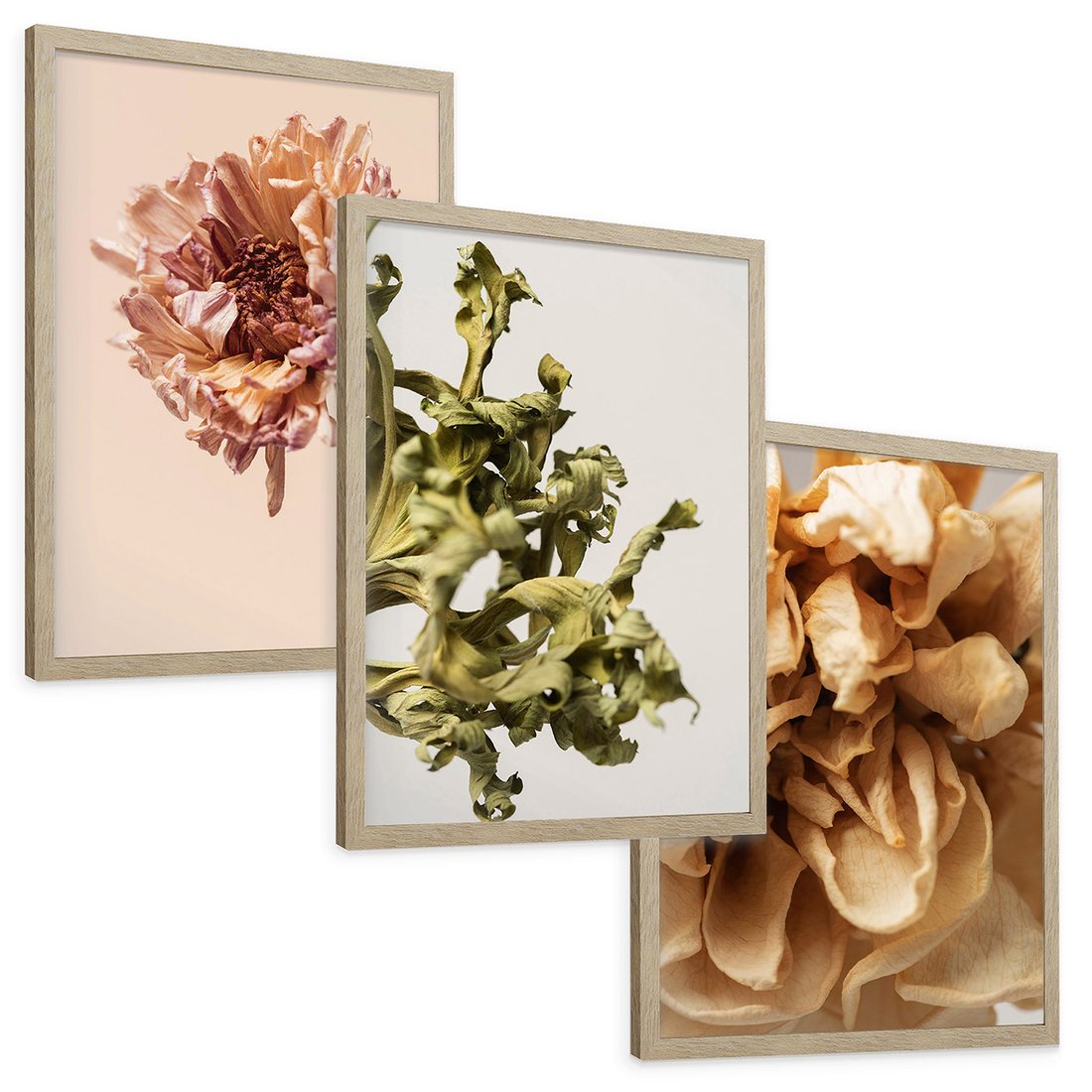 Zestaw obrazy w ramie, plakaty - kwiaty, suche, więdnięcie - rama drewno
