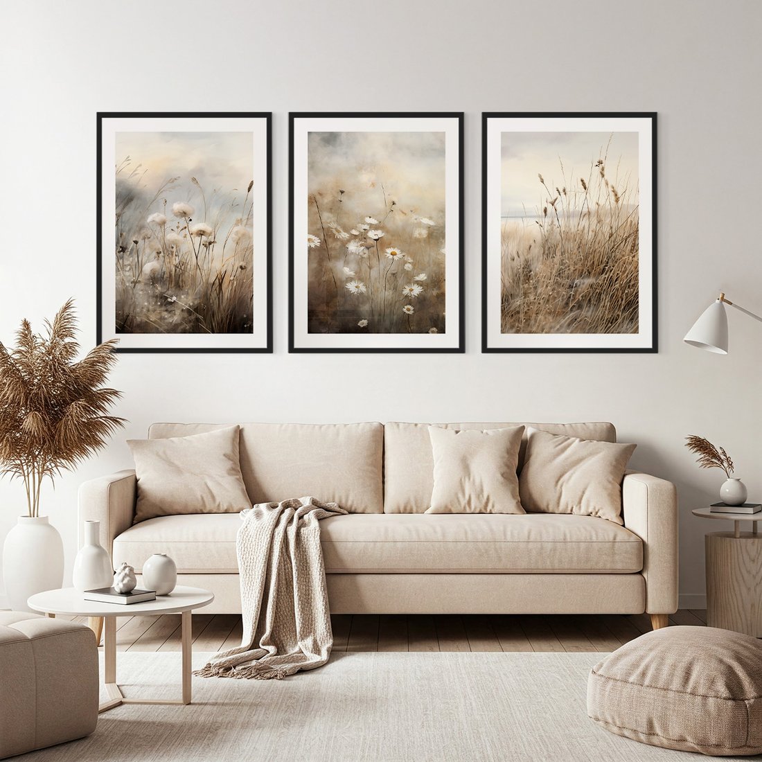 - Zestaw obrazy w ramie, plakaty - kwiaty, trawa, delikatne