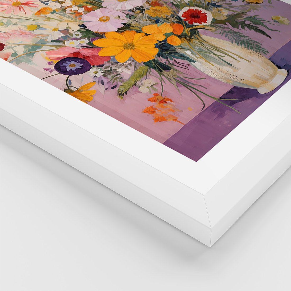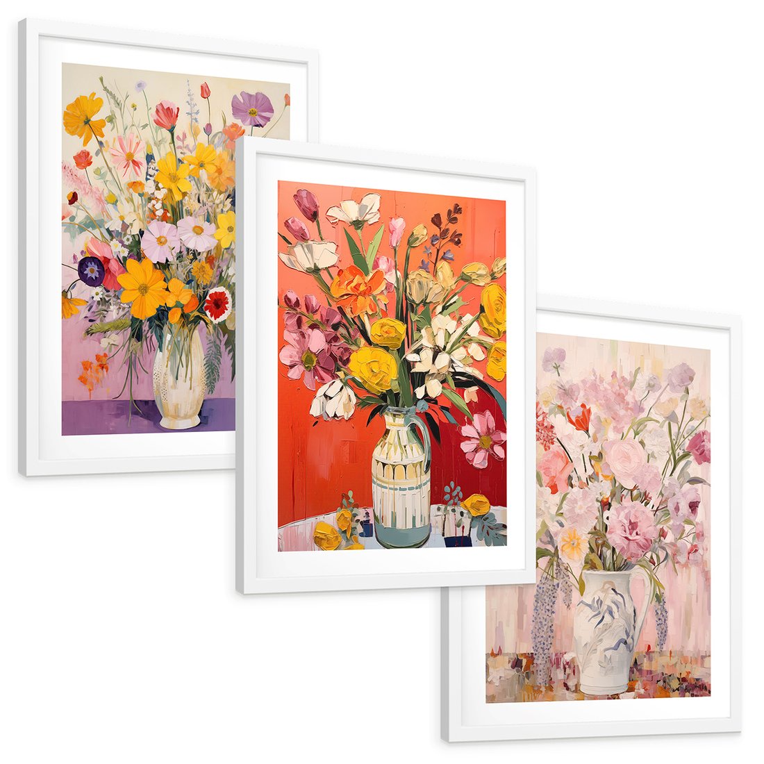 Zestaw obrazy w ramie, plakaty - kwiaty, wazon, bukiet - rama biała