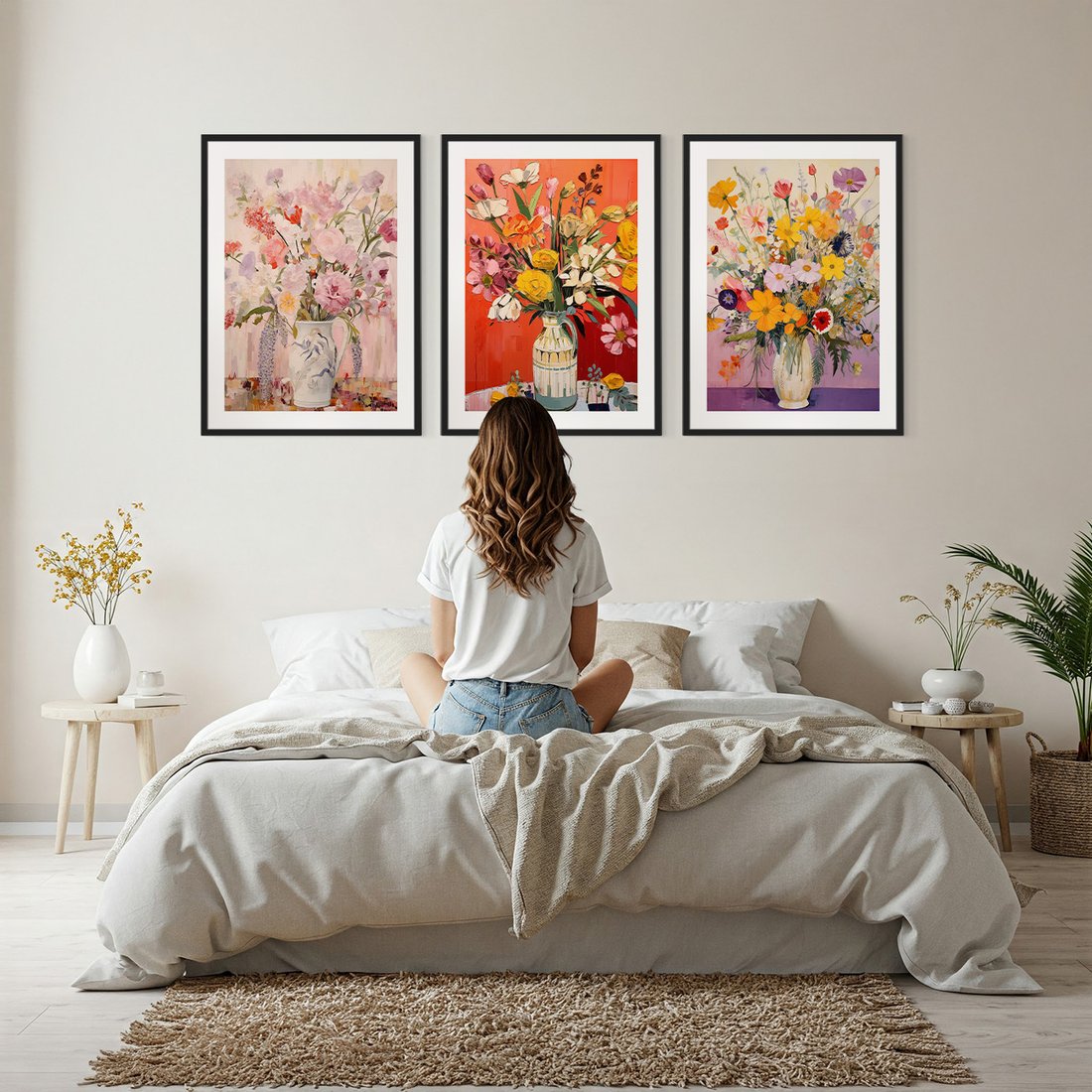 - Zestaw obrazy w ramie, plakaty - kwiaty, wazon, bukiet