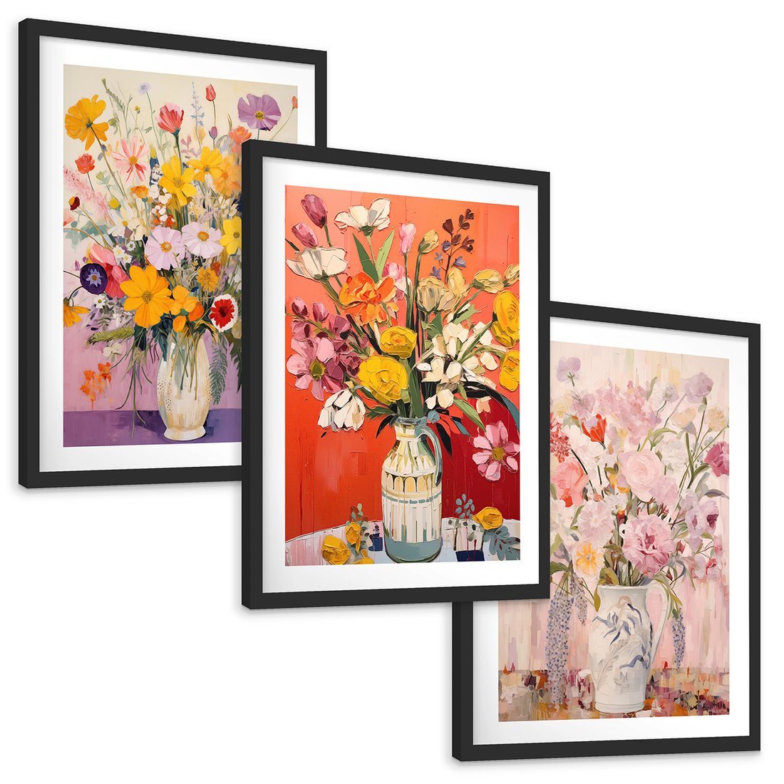 Zestaw obrazy w ramie, plakaty - kwiaty, wazon, bukiet - rama czarna