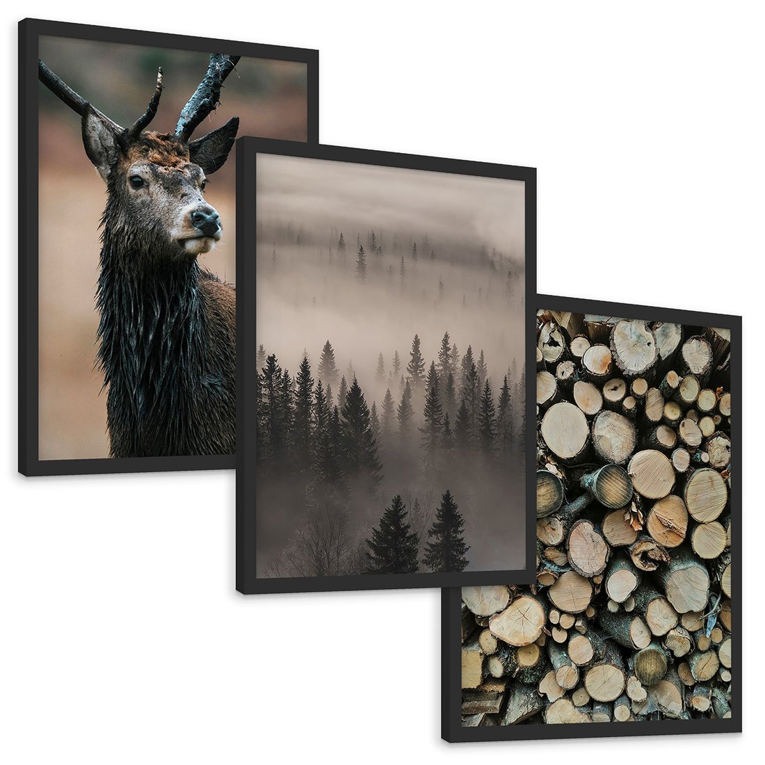 Zestaw obrazy w ramie, plakaty - las, drewno, natura - rama czarna
