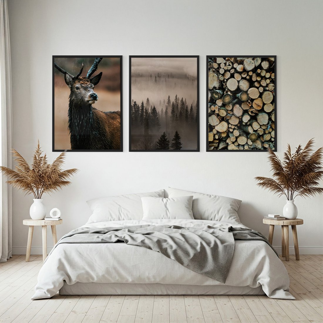 - Zestaw obrazy w ramie, plakaty - las, drewno, natura