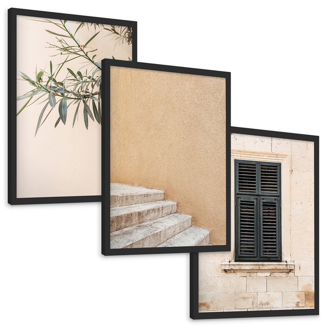 • Zestaw obrazy w ramie, plakaty - liście, budynek, okno