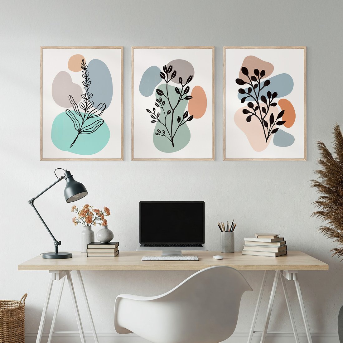 • Zestaw obrazy w ramie, plakaty - liście, gałązki, abstrakcja