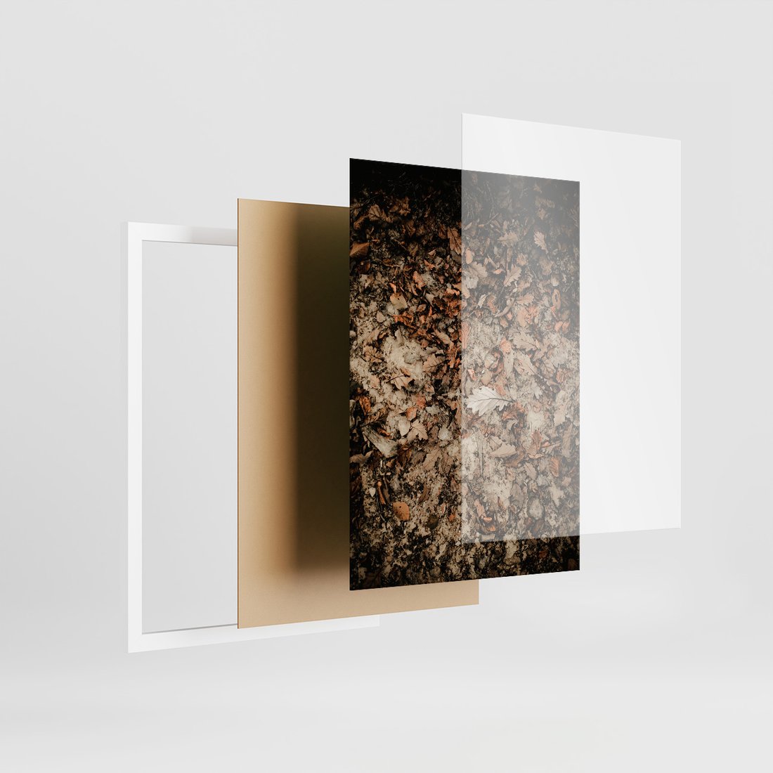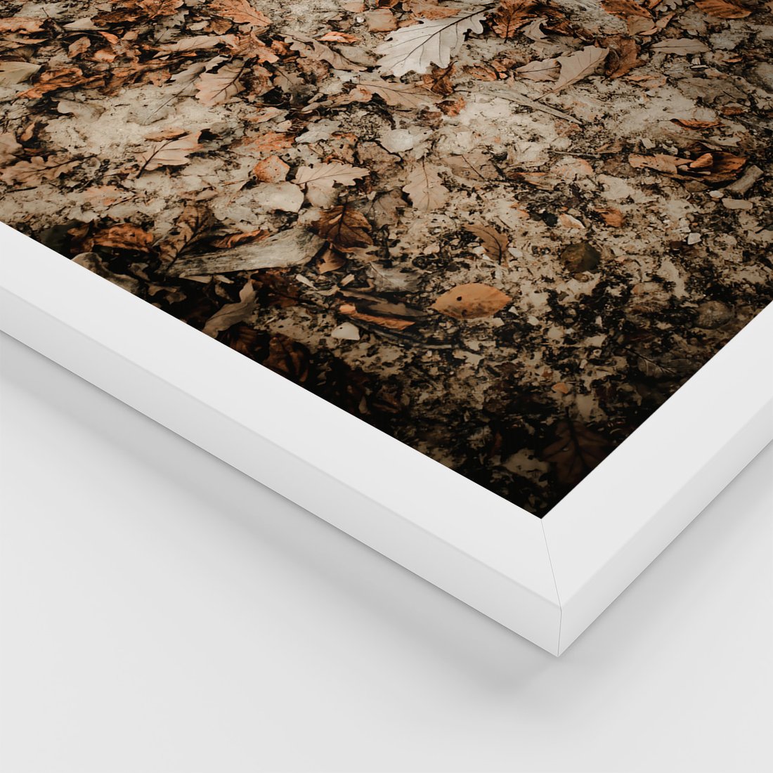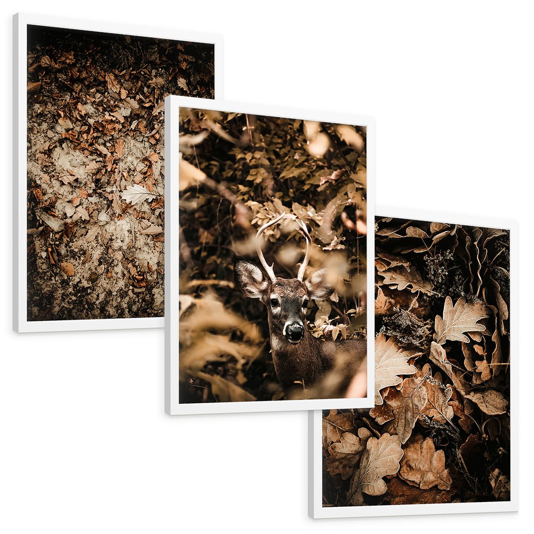 Zestaw obrazy w ramie, plakaty - liście,jeleń,las - rama biała