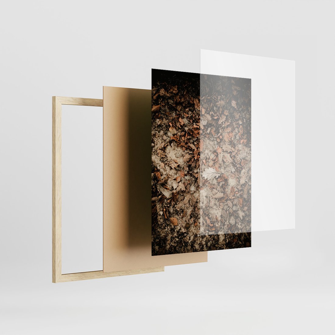 Zestaw obrazy w ramie, plakaty - liście,jeleń,las - rama drewno